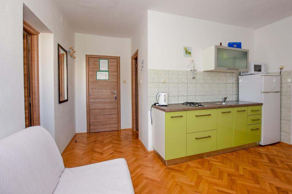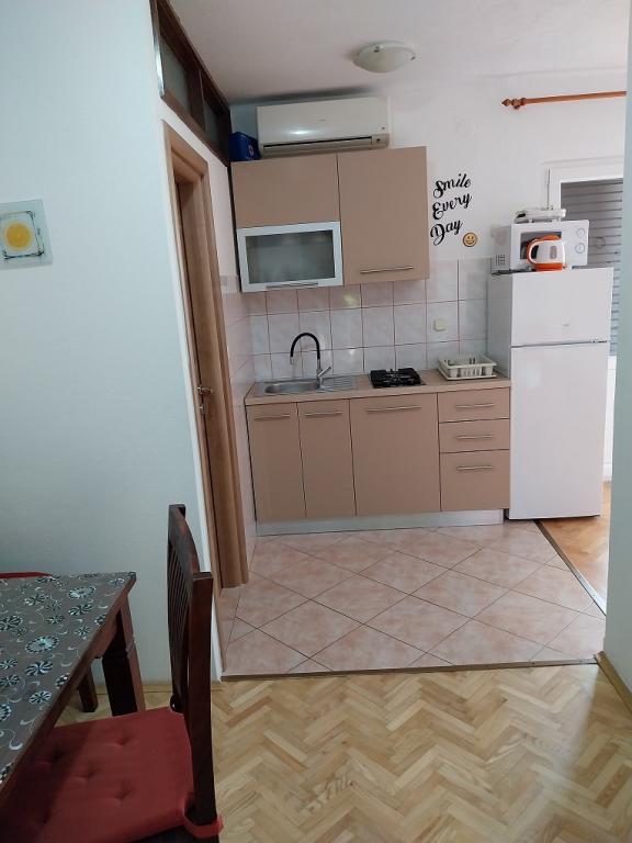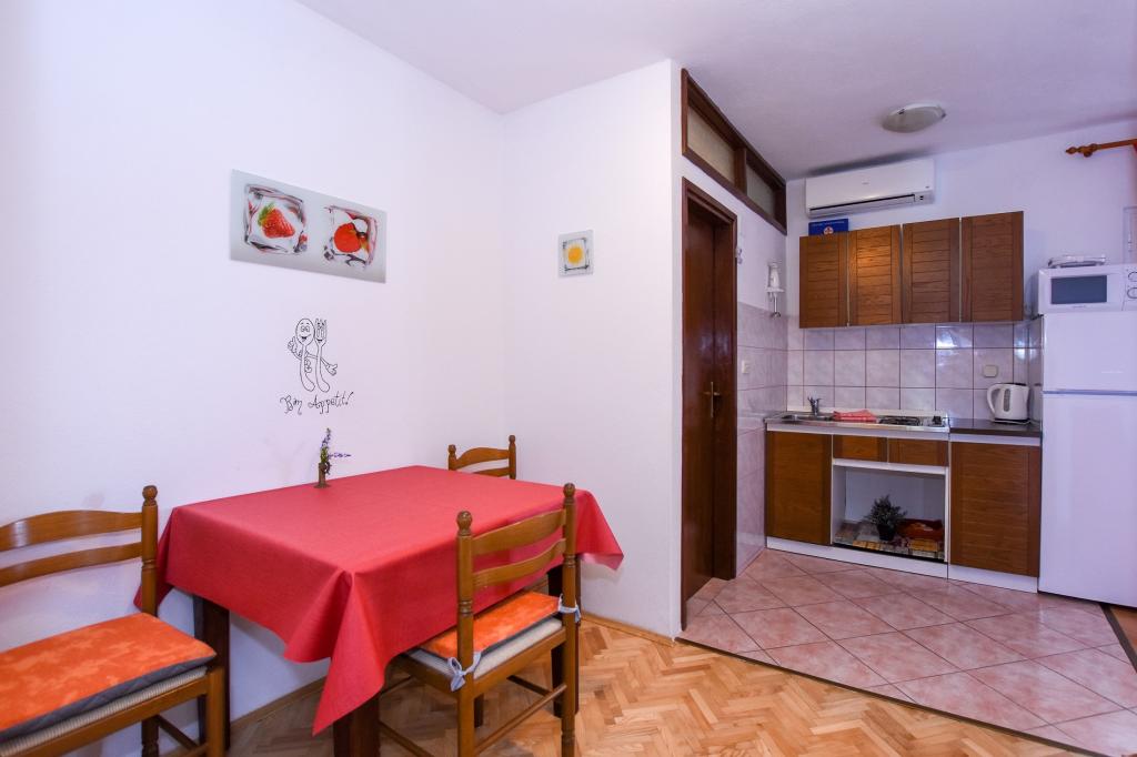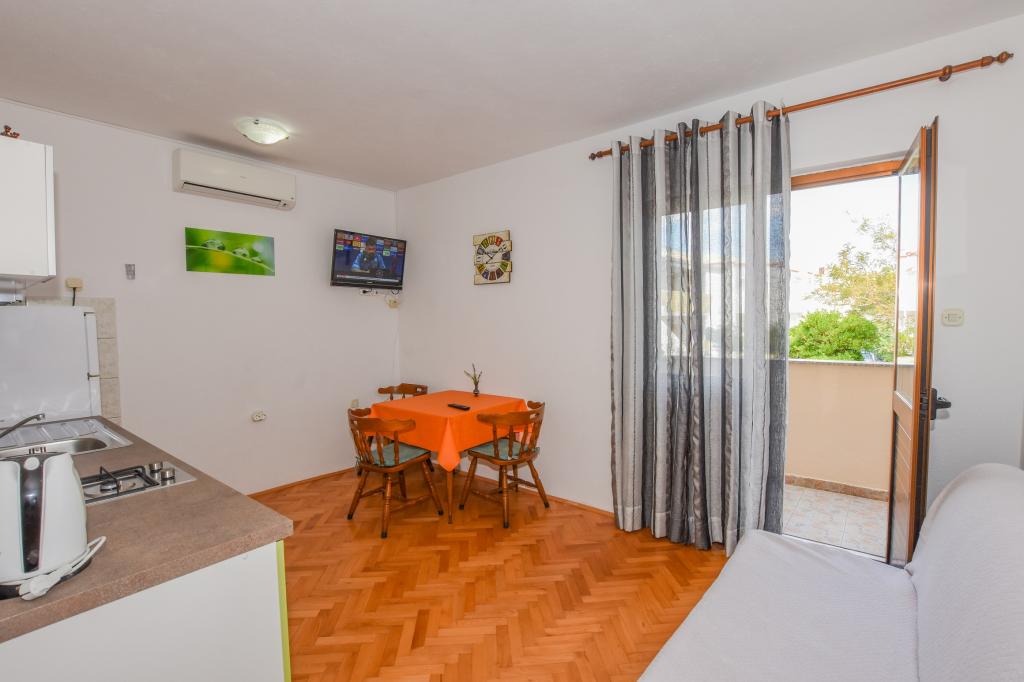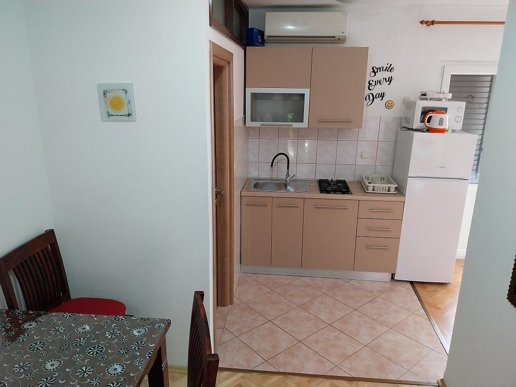 Priporočamo! Prostoren apartma / studio / pripravljen za nas, čista, dišavna perila in brisače povsod. Fotografija ne ustreza več novi resničnosti. Novi veliki hladilnik z ločenim zamrzovalnikom, plinskim štedilnikom / brez pečice / novim ravnim LCD-televizorjem. Odlična lokacija, dobro opremljen trg pod teraso. Manjša plaža je približno 60m, vendar je za otroke ugodnejša / cca 400m / mestna peščena plaža s postopnim vstopom v vodo in še posebej NABOSO! Plaža z vso potrebno opremo: Tobogan in super hiter prigrizek, sladoled, kavarne, restavracija, vse kar potrebujete. V mestu je velik trg ... s sveže pripravljenimi vročimi pakiranimi obroki po nizki ceni. Večerni krožniki, avtomobili, trampolini, potopni grad, trgi ... Zasebno, zelo prostorno parkirišče 50 m od hiše. Okolica vile je precej tiha, velika terasa je v senci, ki je bila prava kul. Sploh ni bilo treba utihniti. Plaža potrebuje sončnik, vodo napolnjena baza, za štiričlansko družino vsaj dva! Na splošno zelo prijeten dopust z odlično nastanitvijo in vse v dosegu. Rad bi se vrnil. Pozdrav domačini, hrvaškem nogometu, želim zmagati! Vladislav