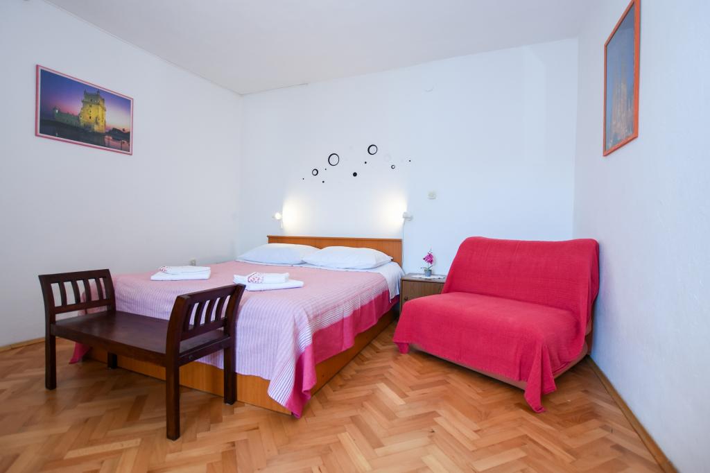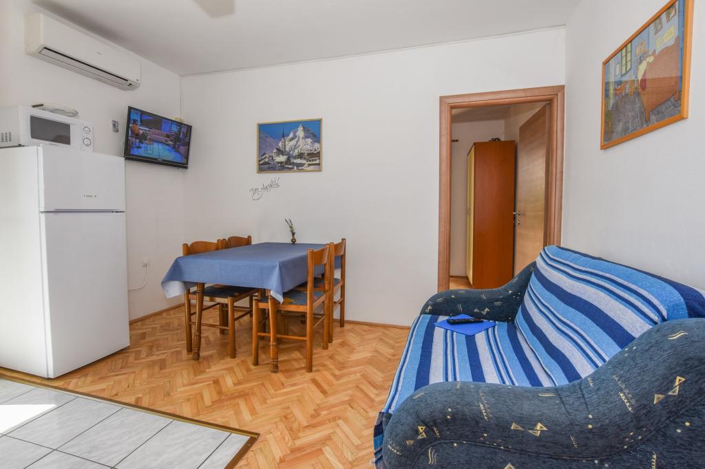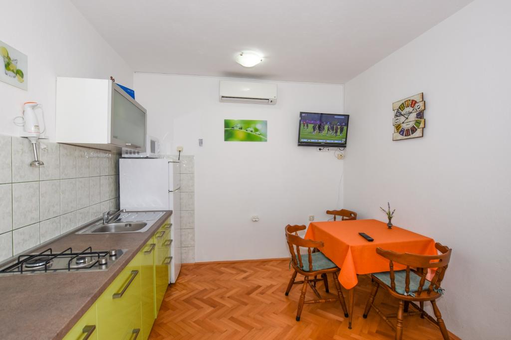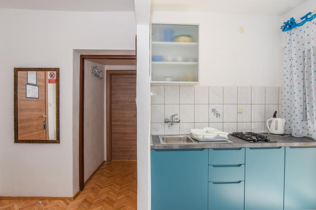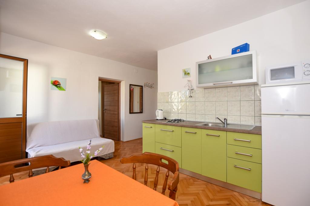 Priporočamo! Prostoren apartma / studio / pripravljen za nas, čista, dišavna perila in brisače povsod. Fotografija ne ustreza več novi resničnosti. Novi veliki hladilnik z ločenim zamrzovalnikom, plinskim štedilnikom / brez pečice / novim ravnim LCD-televizorjem. Odlična lokacija, dobro opremljen trg pod teraso. Manjša plaža je približno 60m, vendar je za otroke ugodnejša / cca 400m / mestna peščena plaža s postopnim vstopom v vodo in še posebej NABOSO! Plaža z vso potrebno opremo: Tobogan in super hiter prigrizek, sladoled, kavarne, restavracija, vse kar potrebujete. V mestu je velik trg ... s sveže pripravljenimi vročimi pakiranimi obroki po nizki ceni. Večerni krožniki, avtomobili, trampolini, potopni grad, trgi ... Zasebno, zelo prostorno parkirišče 50 m od hiše. Okolica vile je precej tiha, velika terasa je v senci, ki je bila prava kul. Sploh ni bilo treba utihniti. Plaža potrebuje sončnik, vodo napolnjena baza, za štiričlansko družino vsaj dva! Na splošno zelo prijeten dopust z odlično nastanitvijo in vse v dosegu. Rad bi se vrnil. Pozdrav domačini, hrvaškem nogometu, želim zmagati! Vladislav