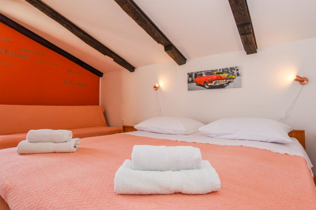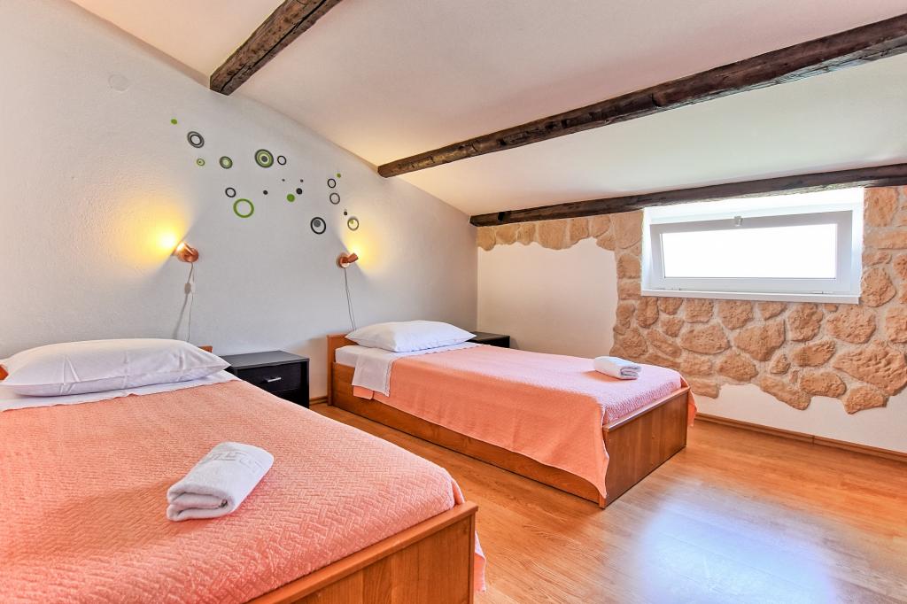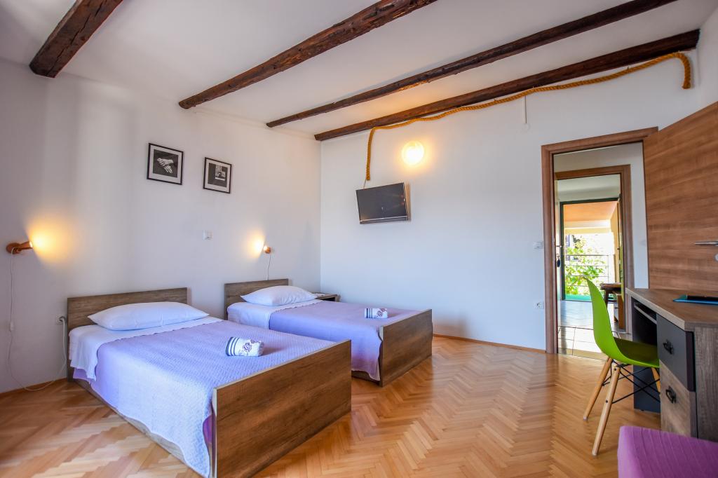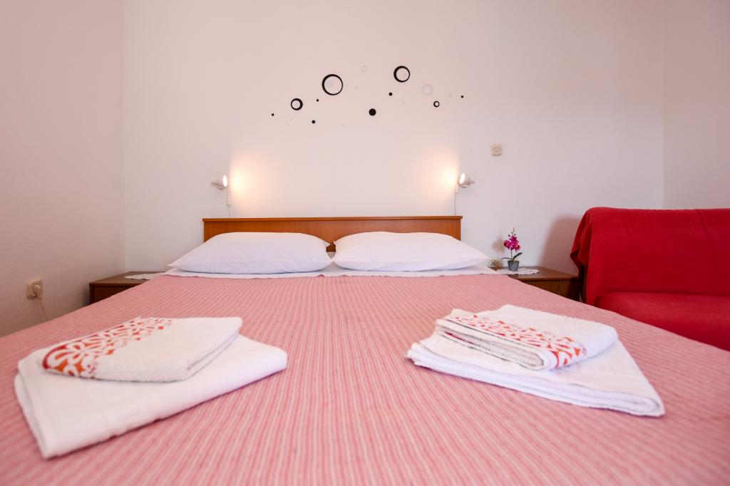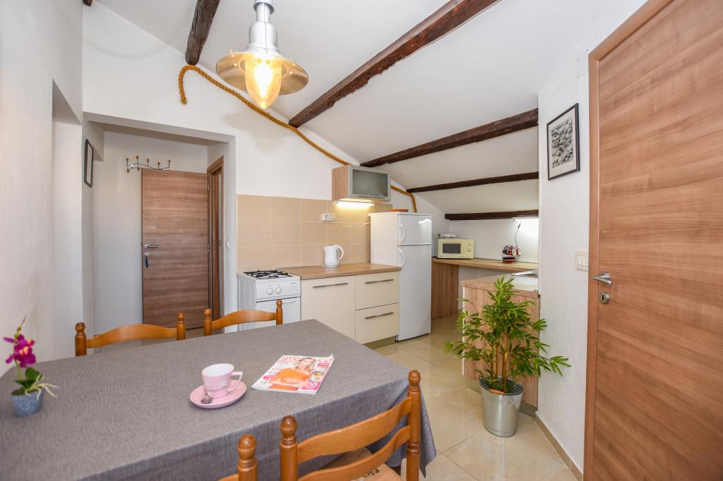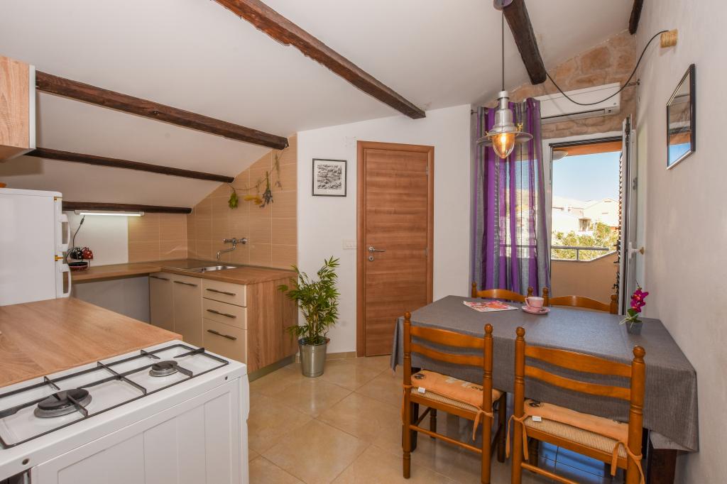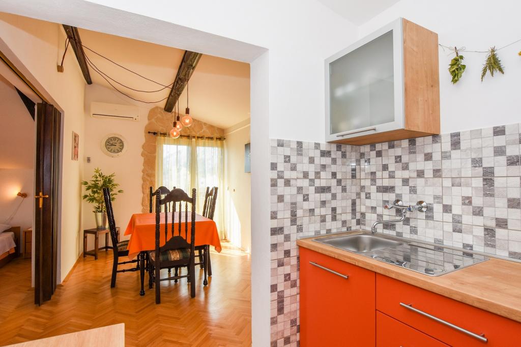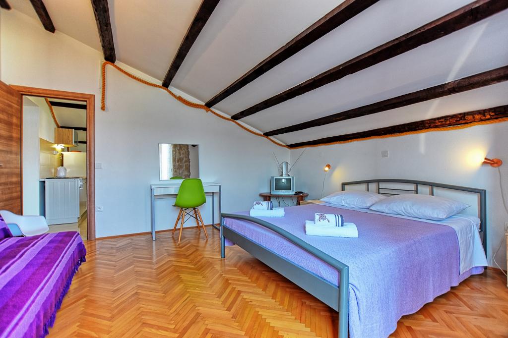 Zelo lepo, prijazni, ustrežljivi lastniki. Zelo dober stik. Soba - čista, urejena, velika, zelo dobro opremljena (hladilnik, štedilnik, posoda, jedilni pribor, lonci, sušilnik za lase, dežnik na plaži, dobrodošli čisto dišeče rjuhe in brisače). Lep pogled iz terase in balkone. Zagotovljen parkirni prostor, približno 100 metrov od majhne plaže v bližini hiše. Lepo, očarljivo mestece. To območje je veliko krajev za raziskovanje. Tako mi in otroci so bili zelo zadovoljni in veseli Hrvaško. Priporočamo!