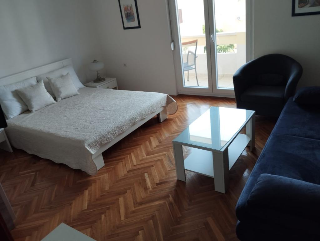Apartma Tina se nahaja v prvem nadstropju družinske hiše. Od morja smo oddaljeni 70 metrov, 10 minut hoje do starega mesta, v mirni družinski soseski, primerni za družinski turizem. Studio ima veliko spalnico, kopalnico in kuhinjo. Stanovanje ima dve spalnici, kuhinjo in kopalnico. V vsakem imate wi fi, klimatsko napravo in zaščiteno parkirišče. Vabljeni v naš objekt.