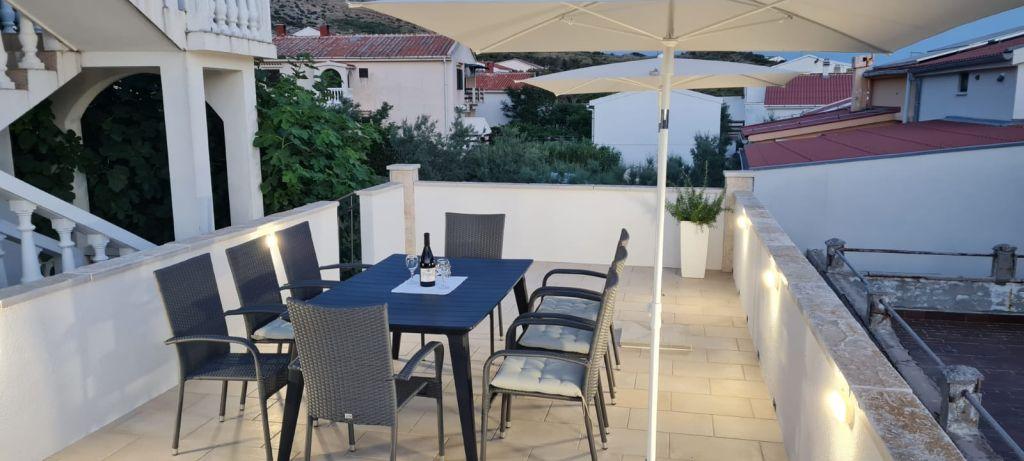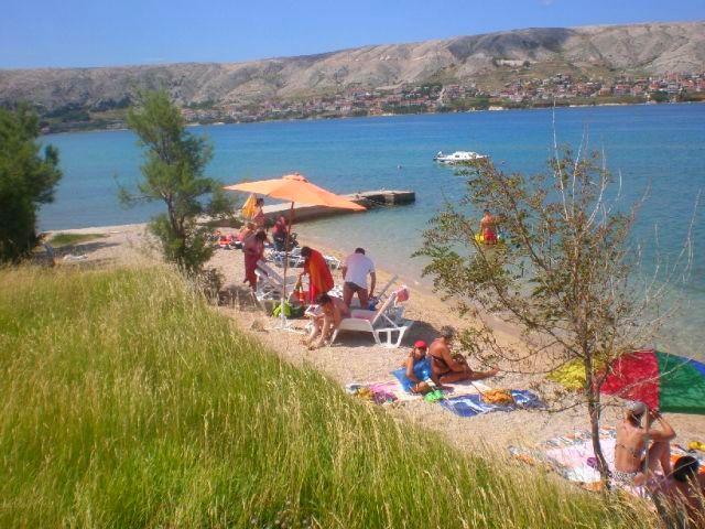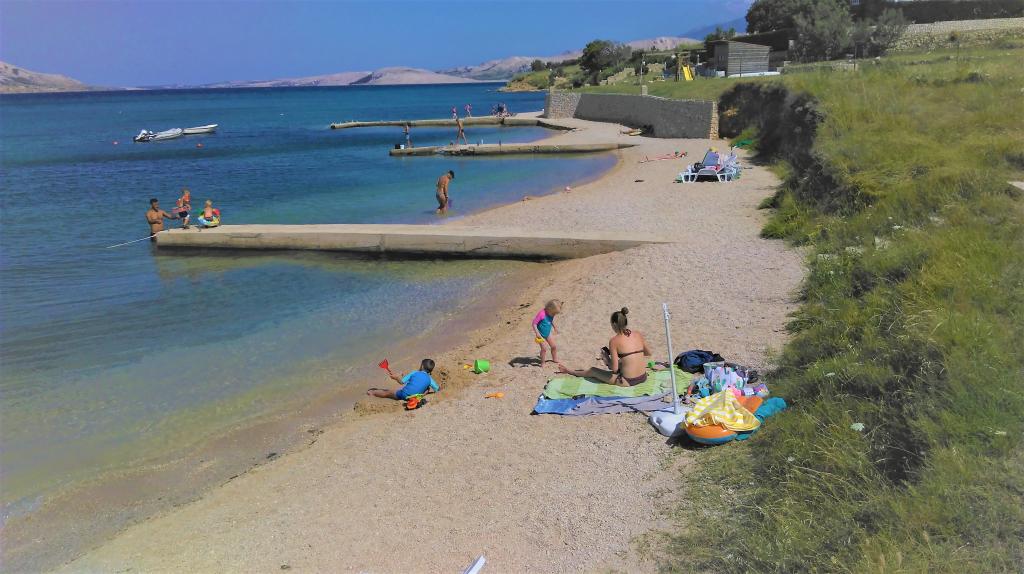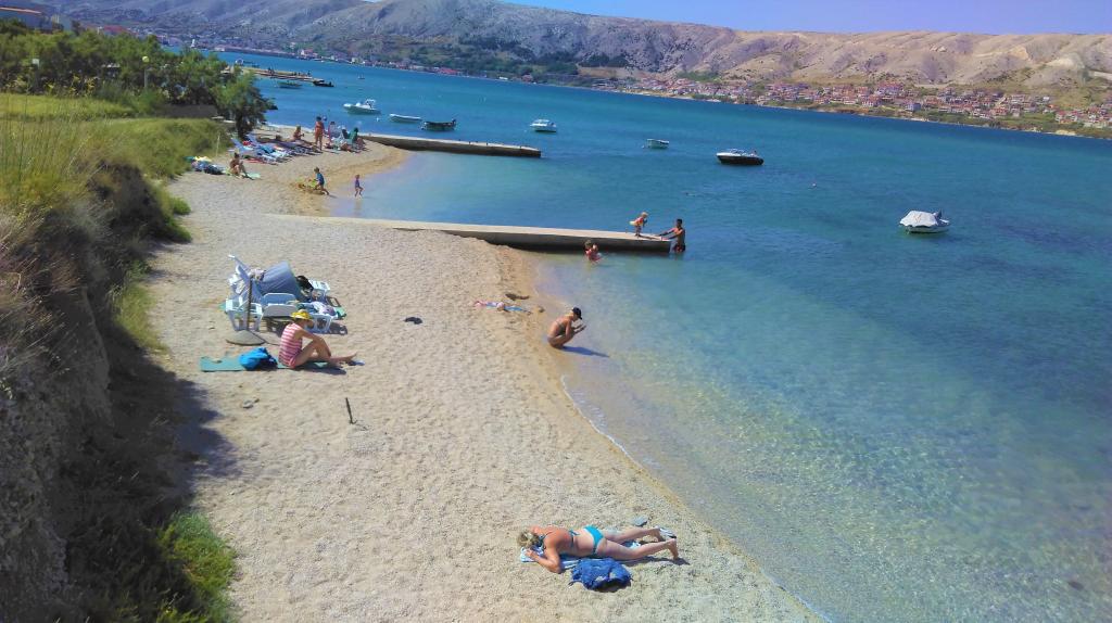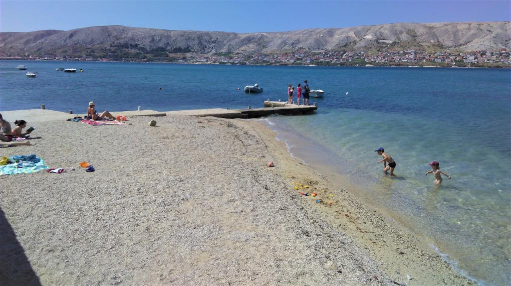 Domačini zelo prijazni, apartma (imeli smo ga v 1. nadstropju) čisto z lepo teraso in pogledom na morje, tiho območje. Nemoten dostop do plaže z uro v roki 3 minute. Lepa plaža (slike odražajo 100% opis, naveden na strani), majhen prod. Do Paga se sprehodite 25 minut ob morju, zelo slikovitem mestu, kot je priporočljivo, popolna izbira za počitnice.