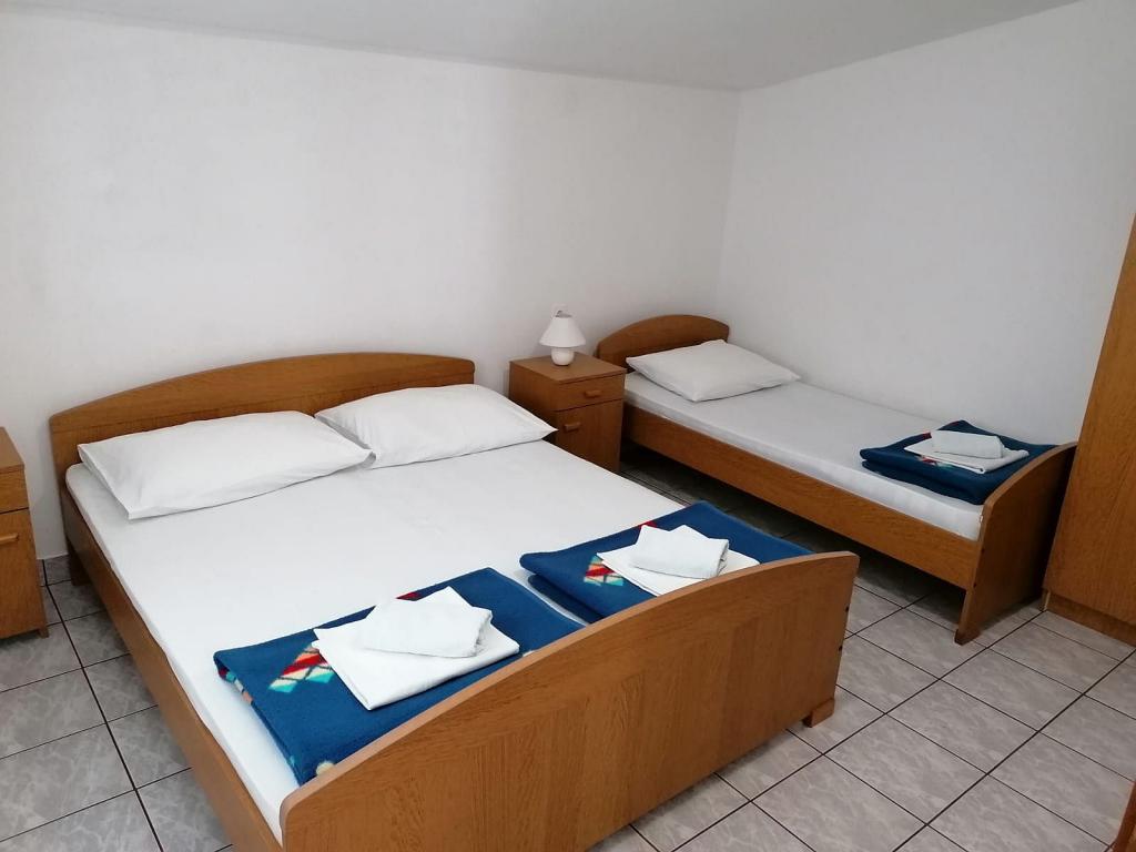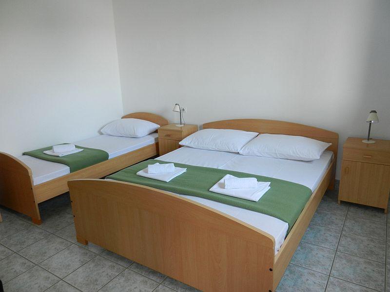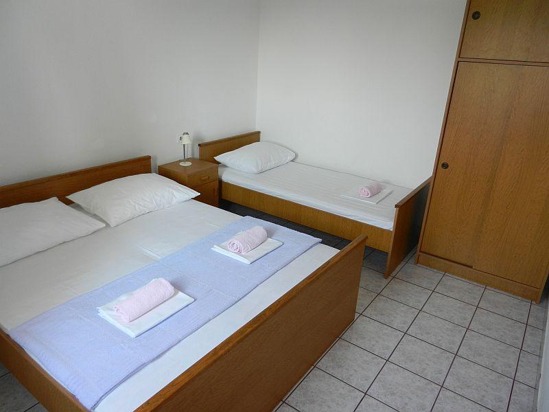 Apartmaji Vicković, za 2-4 osebe, se nahajajo v mestu Pag. Nahajajo se v novo zgrajeni hiši v mirni ulici le 100-150 m od morja. Vsi apartmaji so opremljeni s tremi posteljami v spalnici in z dodatnim ležiščem v dnevni sobi. Razporeditev sob vam omogoča neovirano bivanje: spalnico z dvojnim in dodatnim ležiščem, dnevno sobo z raztegljivim ležiščem za dve osebi, kuhinjo, kopalnico s tušem in zasebno teraso s pogledom na morje. Apartmaji so opremljeni s posodo in jedilnim priborom, brisačami in posteljnino za vsako posteljo, hladilnikom z zamrzovalnikom, plinskim štedilnikom, TV in klimatsko napravo, kar vam omogoča prijetno bivanje v vročih poletnih večerih. Če želite mirne družinske počitnice, se boste počutili kot v svojem domu. Če želite preživeti počitnice s skupino prijateljev, so apartmaji Vicković kraj za vas. Plaža je široka okoli 100-150 m in se razteza vzdolž celotne obale. Vsak apartma ima varovan parkirni prostor. Dobrodošli!