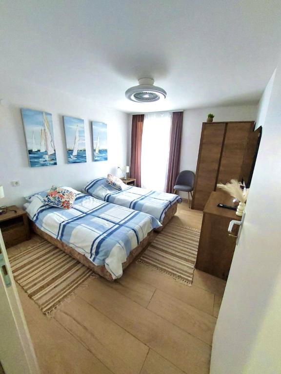 Celotna izkušnja je odlična. Kontakt in dogovor z lastnikom, čistoča, bližina plaže in glavnega trga je na najvišji ravni. Bili smo skeptični glede morebitnega hrupa z glavnega trga, vendar smo pomirjeni, ker je tudi izolacija odlična. Vsa priporočila.