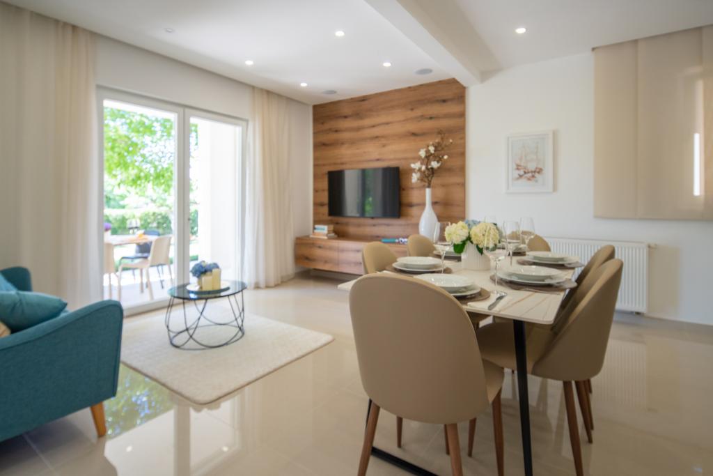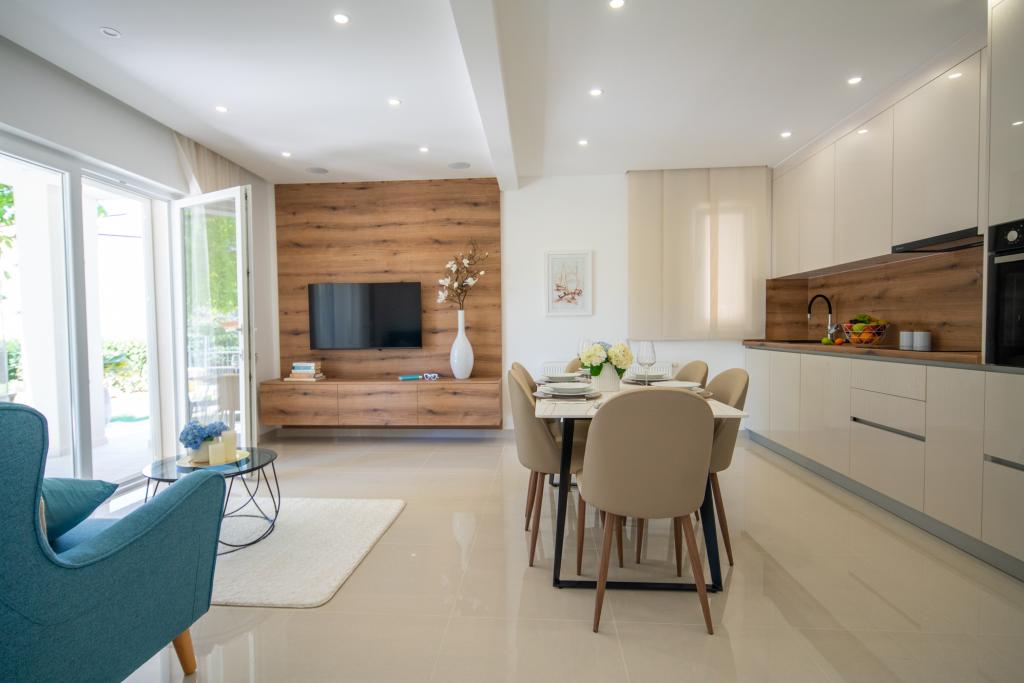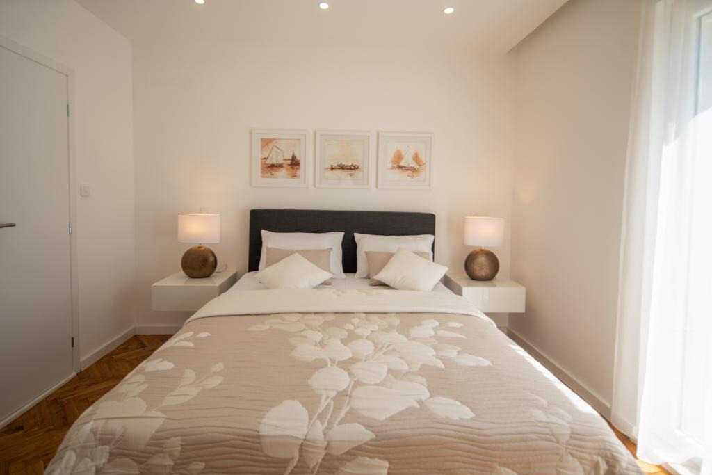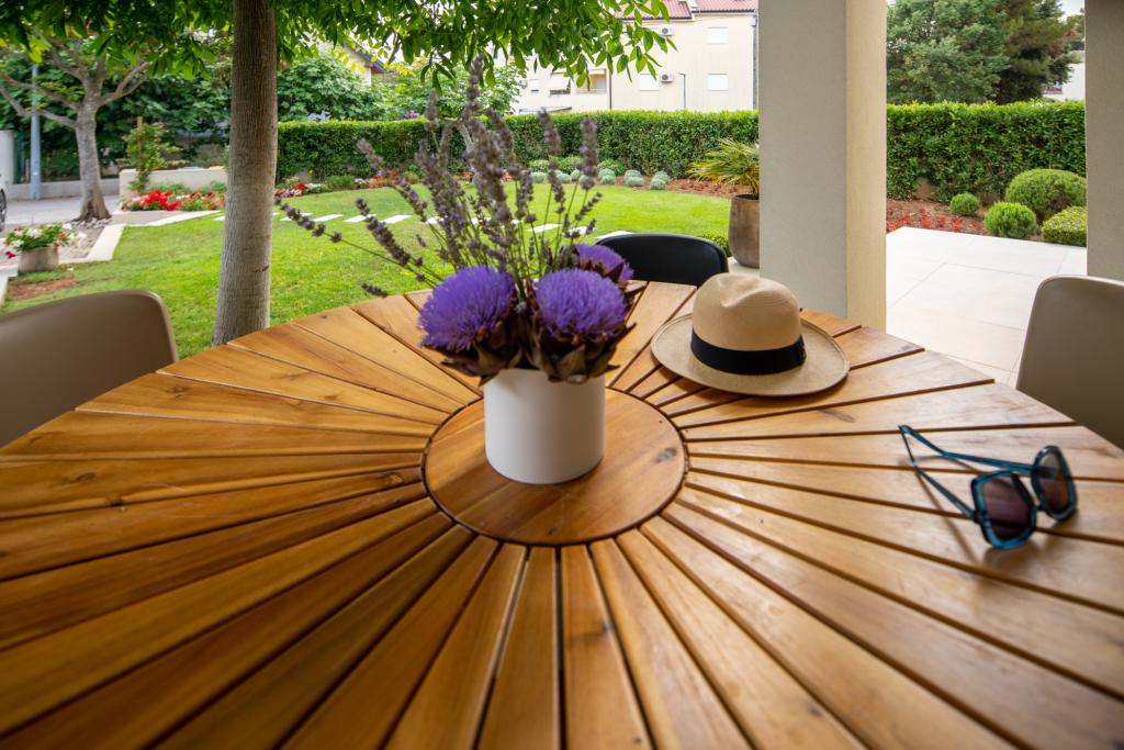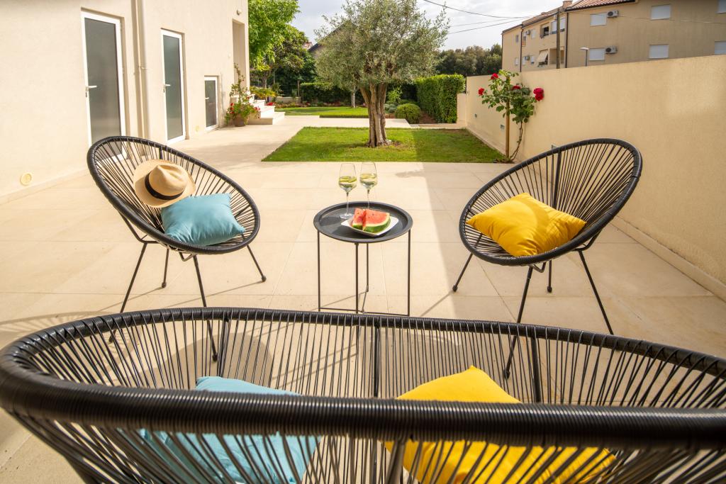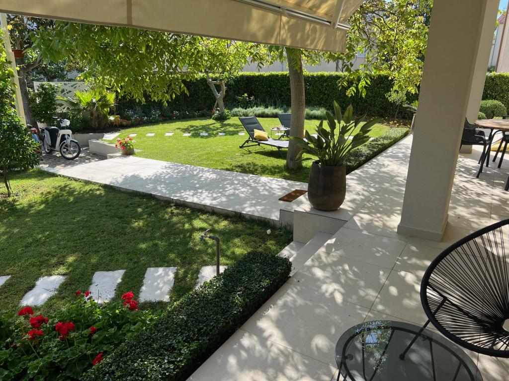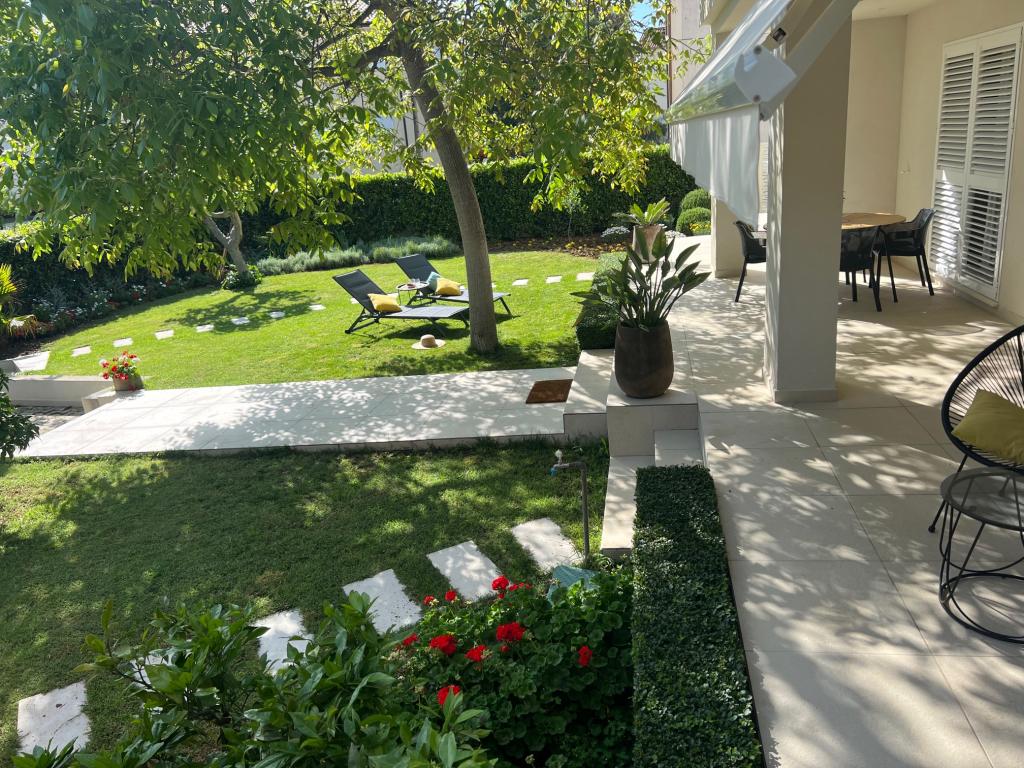 Moderno in sodobno opremljen apartma GARDEN se nahaja v pritličju objekta in svojim gostom, ki so tudi edini gostje objekta, nudi oddih v oazi zelenja z velikim vrtom in žarom. Apartma ima 3 spalnice z zakonsko posteljo, kjer ima vsaka soba svojo kopalnico in TV, popolnoma opremljeno kuhinjo, dnevno sobo in dve terasi. Od centra mesta in plaž je oddaljen 10 minut hoje. Apartma je idealno izhodišče za raziskovanje bogatih možnosti, ki jih ponuja destinacija.