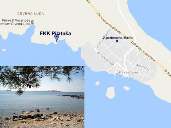 Apartma Mario se nahaja v družinski hiši in je obdan z zelenjem. Apartmaji gledajo na morje, tako da imate s terase čudovit pogled na Kornate. Zaradi svoje idealne lokacije so tako od morja kot od Vranskega jezera oddaljeni 900 metrov, kar vam daje edinstveno priložnost, da se v istem dnevu kopate v morju ali jezeru. Nudimo odlično namestitev vsem naturističnim gostom, ki se lahko kopajo na plaži FKK Pilatuša. Za naše goste smo poskrbeli z velikim parkiriščem in dodatnimi vsebinami: pijača dobrodošlice, velik žar, dodatni zunanji tuši, ograjeno dvorišče primerno za majhne otroke itd. Vransko jezero. Od Fun parka Mirnovec smo oddaljeni le 2,5 km. , tako da vam lahko zagotovimo kakovostno namestitev, ko se odločite za obisk tega parka