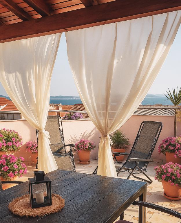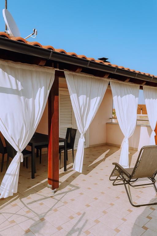 Stanovanje je prostorno, udobno in čisto. Kuhinja je opremljena z vsem, kar potrebujete. Zelo lepa senčna terasa. Vse, kot je opisano. Stanovanje je videti še bolje kot na fotografijah. Priporočam ga družinam z otroki zaradi lokacije v pritličju. Parkirni prostor v senci. Približno 5-10 minut hoje do plaže. Gospe Merici priporočamo in se zahvaljujemo za odlično bivanje v Pakoštanah