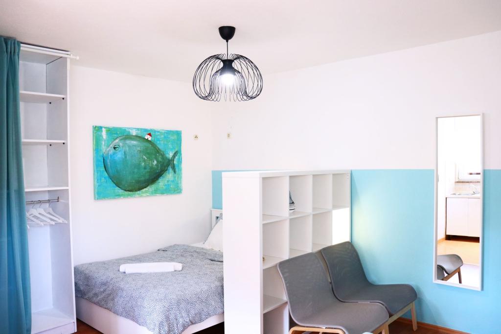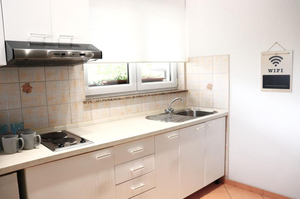 Apartma A4 je zelo lep, prostoren, čist z veliko teraso s pogledom na morje in zelo dobro opremljeno kuhinjo. Gospodinja je prijetna in prijazna. Lokacija apartmaja je na mirni lokaciji, a hkrati nekaj korakov od morja, trgovin in restavracij. Za družine z zelo majhnimi otroki stanovanje ni najbolj primerno, dostop je po spiralnih stopnicah in spalnica z ločenima ležiščema se nahaja izven stanovanja z ločenim vhodom s terase, morali smo uporabiti spanje na kavču, kar smo želel izogniti z izbiro stanovanja z več spalnicami. Za druge pa bo stanovanje dobra izbira.