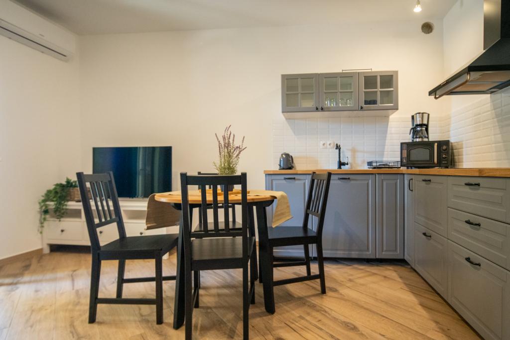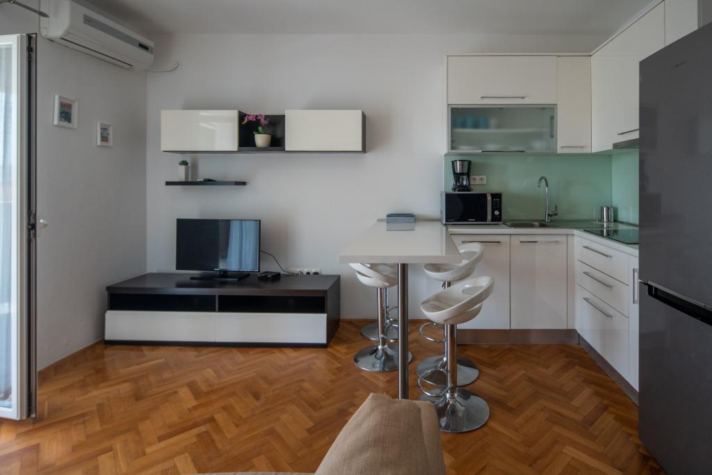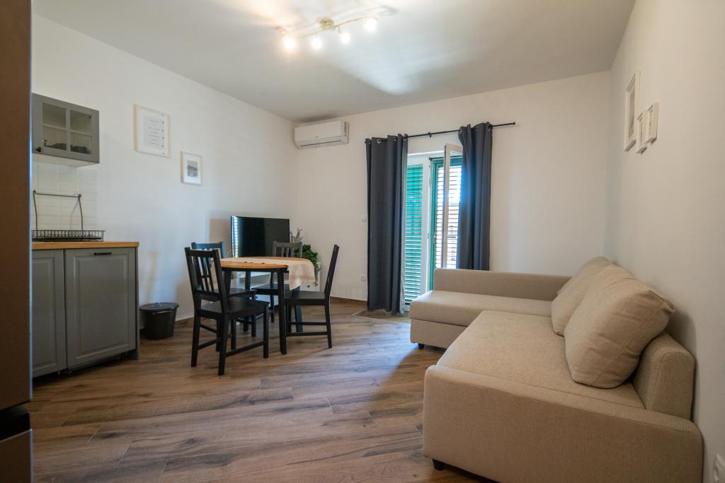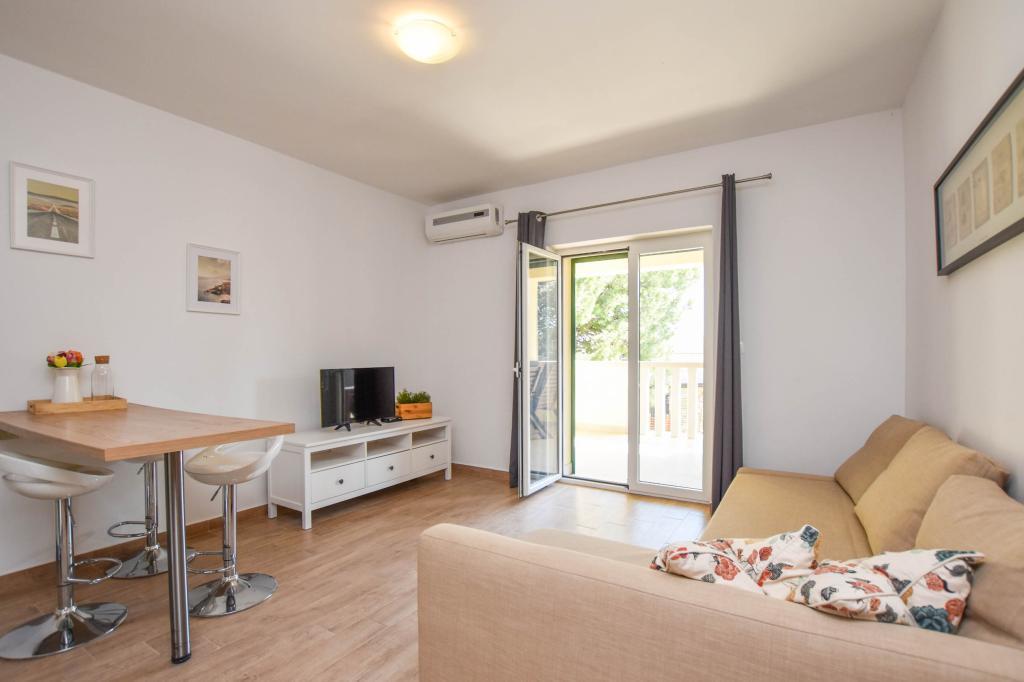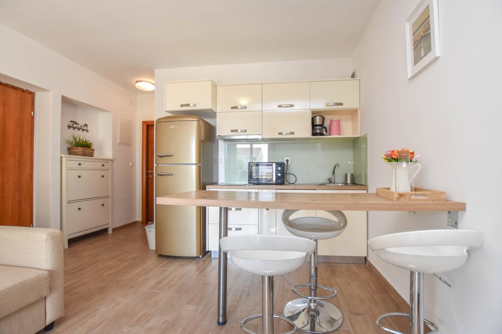 Tukaj smo bili že dvakrat in smo zelo zadovoljni. Prijazna lastnica, čisti apartmaji, čeprav bi lahko bili malo večji. Lahko bi se namestili štirje, dva odrasla in dva manjša otroka. Zunaj je igrišče za otroke, ločeno dvorišče, tja nihče drug ne hodi, blizu plaže. Kratek sprehod "do mesta", do promenade. Plaža je odlična tudi za majhne otroke, postopen dostop do morja, prodnata plaža.