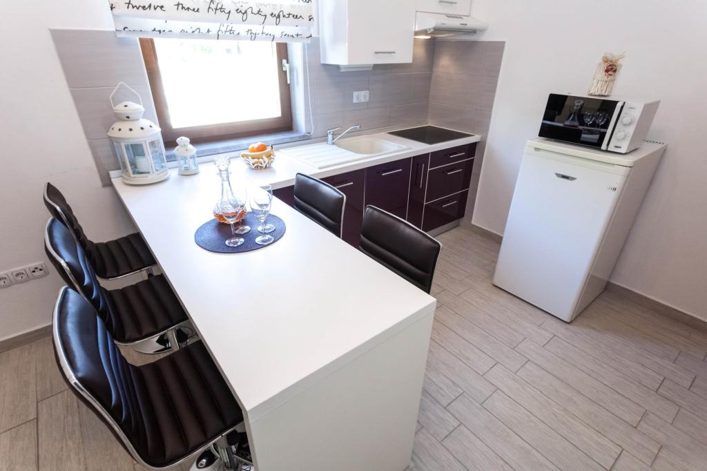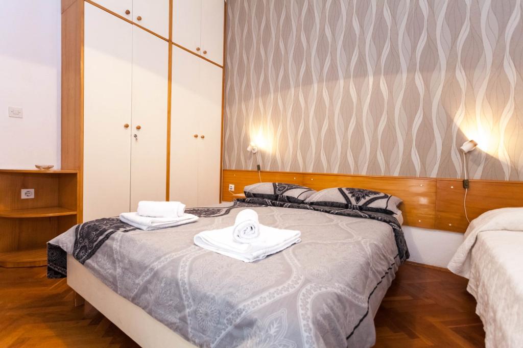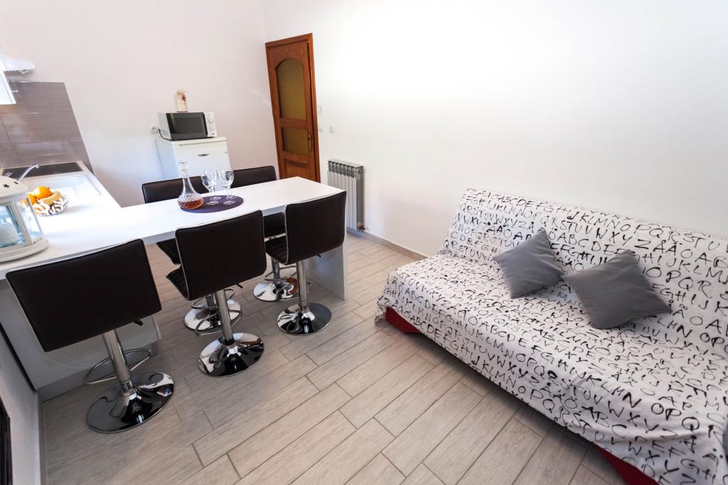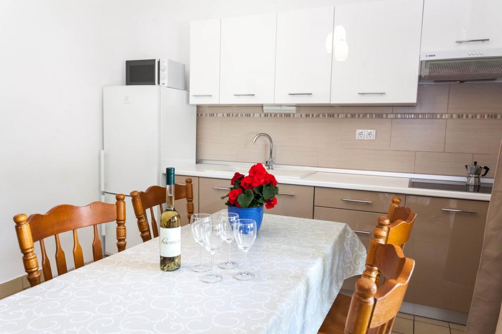 Dobrodošli v naših apartmajih s pogledom na morje! Naš apartma, soba in studio se nahajajo v drugem nadstropju hiše, le 5 minut hoje od prve plaže in centra mesta - idealna lokacija za prijeten in sproščujoč oddih. Vse namestitvene enote imajo čudovit pogled na morje in so opremljene s satelitsko televizijo ter brezplačnim internetom, tako da lahko ostanete povezani med počitnicami. Ne glede na to, ali izberete apartma, sobo ali studio, vas čaka udobje in topel sprejem. Prihod je možen po 14.00, odhod pa do 10.00. Veselimo se vašega prihoda in vam želimo nepozabno bivanje!