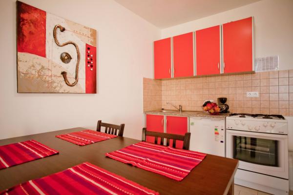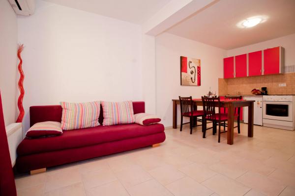 Ponujamo vam namestitev v petih vrhunsko urejenih in opremljenih apartmajih v novozgrajeni hiši, ki se nahaja le 200 m od plaže - trije apartmaji lahko sprejmejo 4 osebe, druga dva apartmaja pa sta namenjena 5 osebam. Preživite mirne družinske počitnice v majhnem in mirnem mestecu Pakoštane v osrčju Sredozemlja in Jadranskega morja.