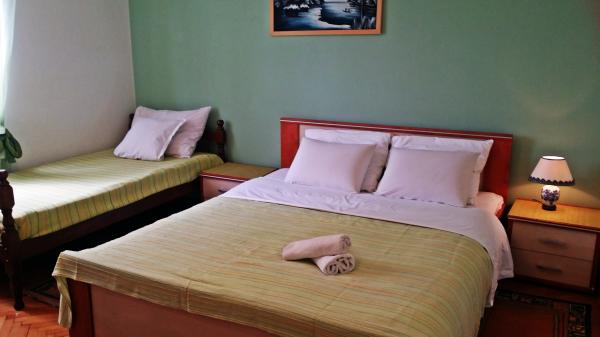 Uživajte svoje počitnice v osrčju Dalmacije – Apartmaji Ante v Pakoštanih! Naši apartmaji se nahajajo v 1. nadstropju družinske hiše, le 6-7 minut hoje od centra Pakoštanov in čudovite plaže. Idealni so za miren in prijeten oddih v bližini morja. Apartma Ante • Kapaciteta: 2+2 osebi • Sestavljen je iz dnevne sobe s kuhinjo in jedilnico, spalnice, kopalnice in pokrite terase • Klimatiziran, z udobnim raztegljivim kavčem Soba Petra • Kapaciteta 2+1 • Zakonska postelja + enojna postelja • Hodnik, kopalnica in terasa • Klimatizirano. Gostje sobe lahko uporabljajo letno kuhinjo v pritličju.