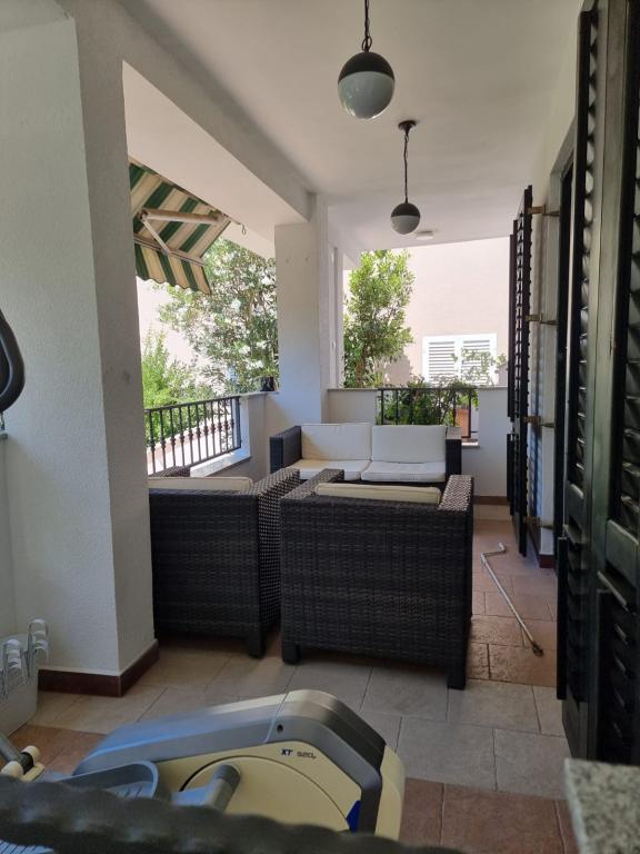 Moderno urejeni apartmaji v osrednjem delu Pakoštana. Klimatizirano, popolnoma opremljeno (brisače, posteljnina itd.) Objekt se nahaja 400 m od morja, 200 m od centra. Najbližja trgovina je oddaljena 20m, pekarna 15m.