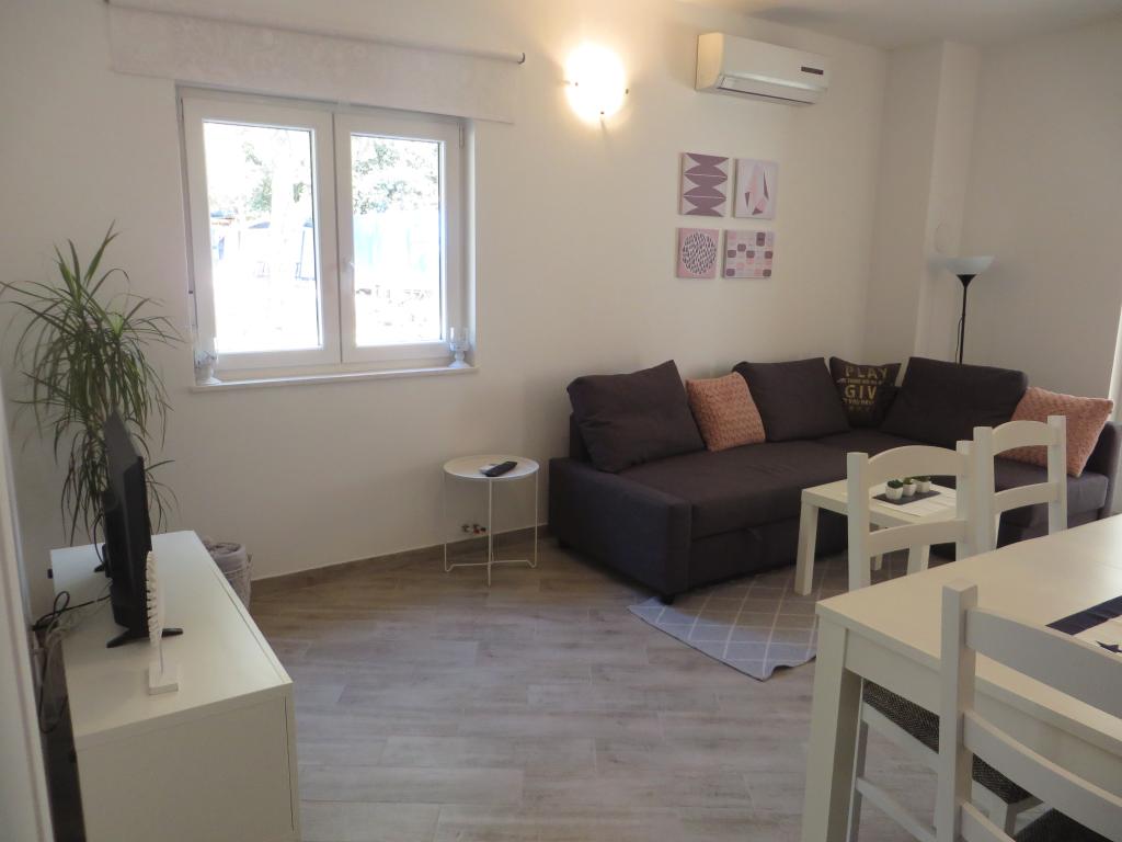 Naša hiša je na novo zgrajena, prav tako naši apartmaji, moderni in novi. Imamo tudi zasebno parkirno mesto za avtomobile naših gostov. Smo mlada družina, ki živi na posestvu in smo vedno na voljo za želje naših gostov. Poleg tega imamo lastno proizvodnjo vina in olivnega olja. Upamo, da boste uživali v bivanju v naših apartmajih in uživali v degustaciji našega lokalnega vina in olivnega olja. Nahajamo se v zelo mirni in tihi soseski v naravnem okolju.