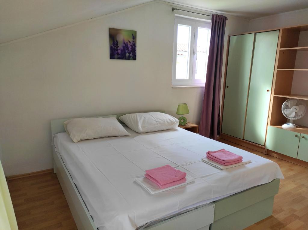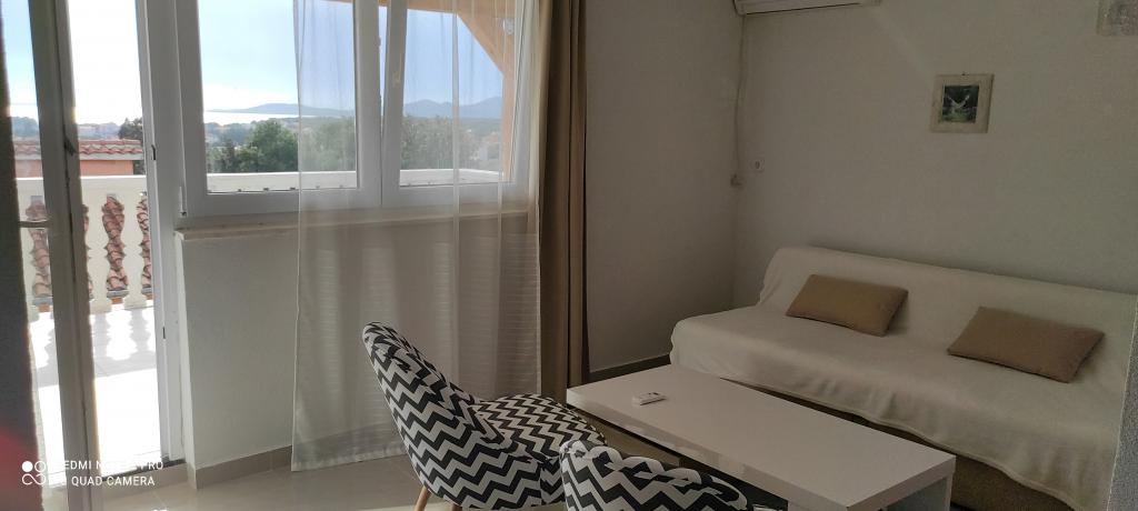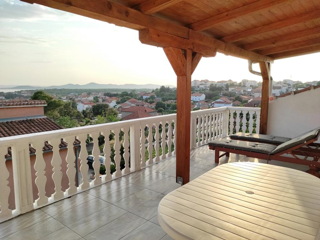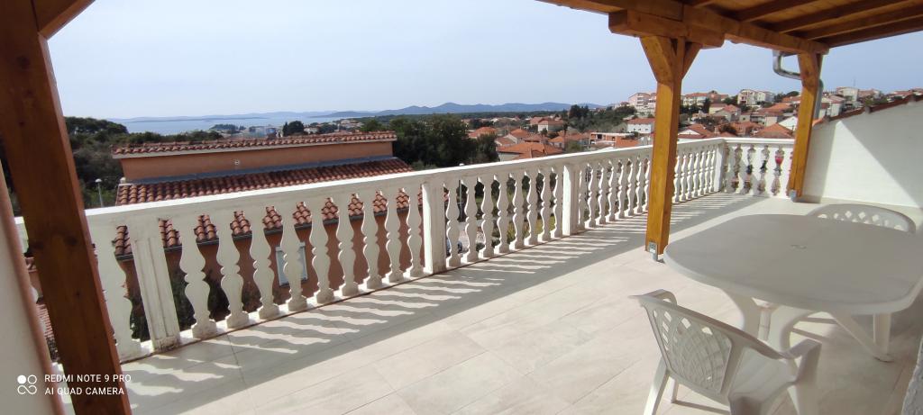 Družinska hiša, v kateri se nahaja apartma, se nahaja 600 m od morja, to je od centra mesta. Od Vranskega jezera je oddaljena 500 m, obdana je z zelenjem in vsakemu gostu nudi miren in prijeten oddih. Stanovanje je veliko 100 m2. Sestavljen je iz 2 spalnic z zakonsko posteljo, dnevne sobe z raztegljivo posteljo, kuhinje, kopalnice in velike terase 30 m2. Nahaja se v drugem nadstropju hiše in ima ločen vhod. Apartma ponuja čudovit pogled na morje, mesto, jezero in daljni Velebit. Gostom je na voljo zunanji prostor v pritličju ter žar. Parkirna mesta se nahajajo na dvorišču. Kontaktirajte nas preko e-pošte, saj vam tako lahko hitro in podrobno posredujemo vse informacije.