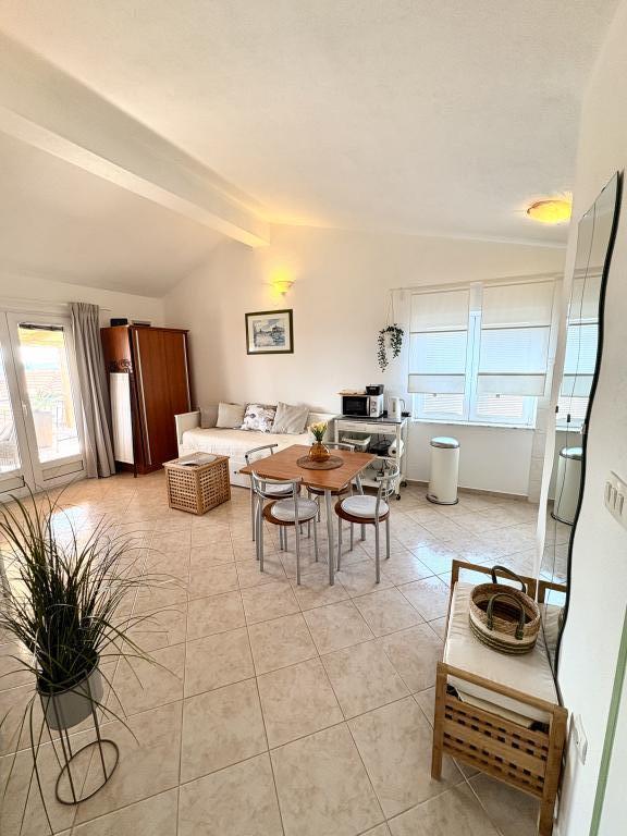 Zelo lepa namestitev, lepa velika terasa. Studio je dovolj za družino z majhnimi otroki. Oprema je super, vse, kar potrebujete. Zelo lepi lastniki, zelo prijazni in pripravljeni. Kratek sprehod do plaže. Zvečer in ponoči. Priporočamo vam, da uživate v počitnicah.