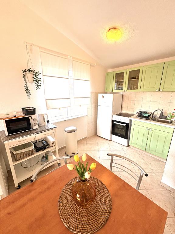 Zelo priporočam apartma v IVANI! Čist, dobro opremljen, čudovit pogled na morje. Plaža je od plaže oddaljena 200 m. Vse izgleda natanko tako, kot je prikazano na slikah. Ogromna terasa z mizo za 4 osebe, dnevno posteljo, sušilec za oblačila. Kuhinja je opremljena z vso potrebno opremo. Lepi lastnik vedno pozdravi goste z odličnimi figami ali lubenicami. Obiskali smo jo že drugič in se bo zagotovo vrnila k njej. IVANA! Lep pozdrav in hvala.