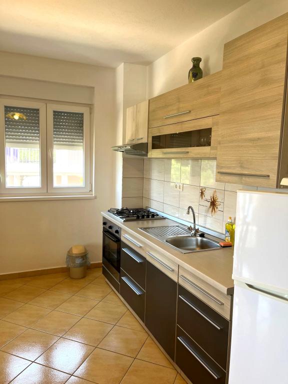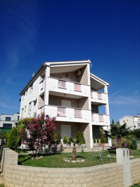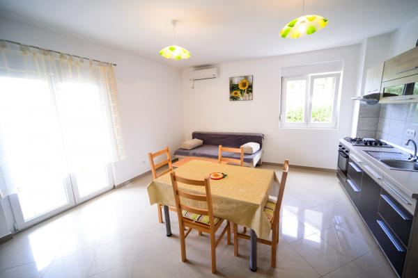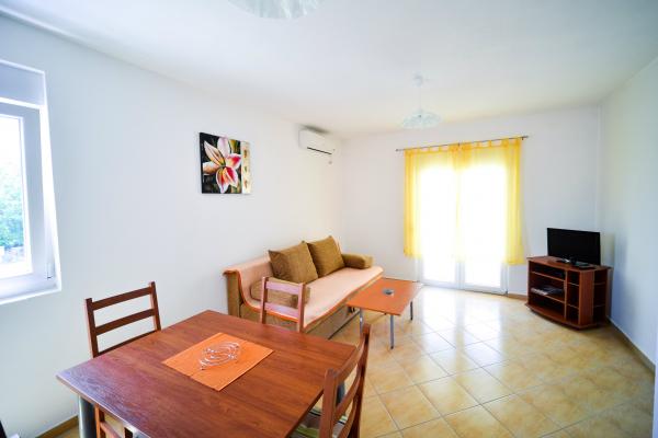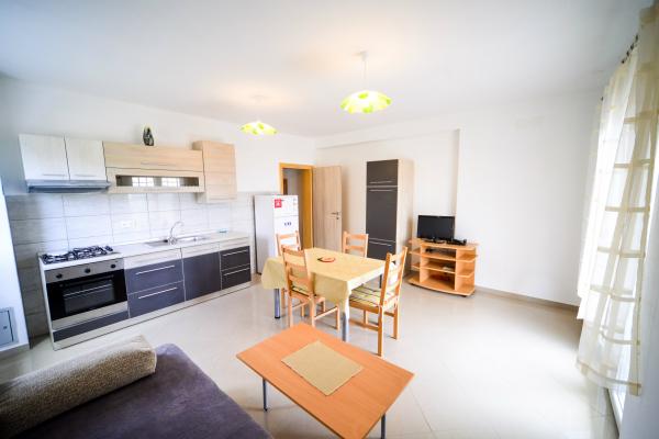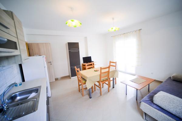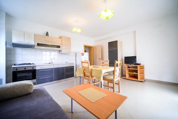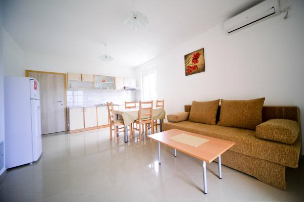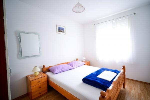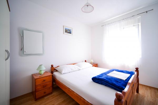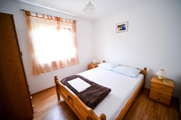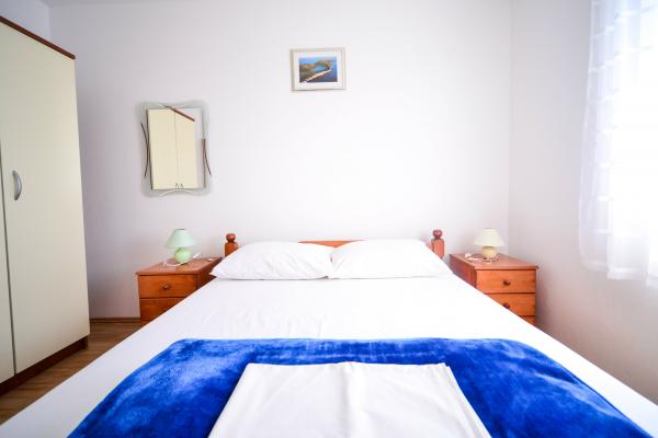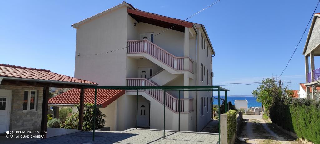 Hiša z apartmaji se nahaja v neposredni bližini morja. Zagotavlja mir in zasebnost. V vsaki etaži sta dve stanovanji velikosti 60m² in 65m². Vsebujejo eno spalnico z veliko zakonsko posteljo (udobne vzmetnice debeline 23 cm), kuhinjo, dnevno sobo z veliko posteljo in kopalnico s tušem. Opremljeni so z vsem, kar sodoben apartma zahteva, da bi gostu zagotovili kar najbolj udobno bivanje v njem. Za hišo so zagotovljena pokrita parkirna mesta za vsako vozilo. Zunanji žar je na voljo vsem. Kontaktirajte nas preko e-pošte, saj vam tako lahko hitro in podrobno posredujemo vse informacije.