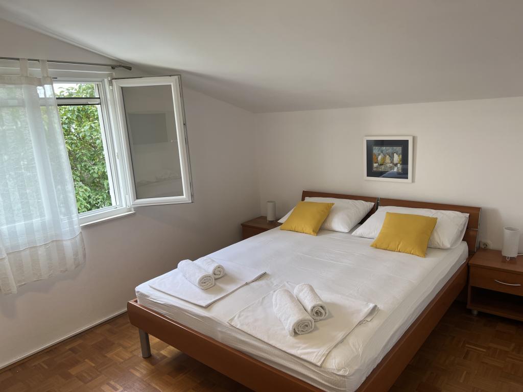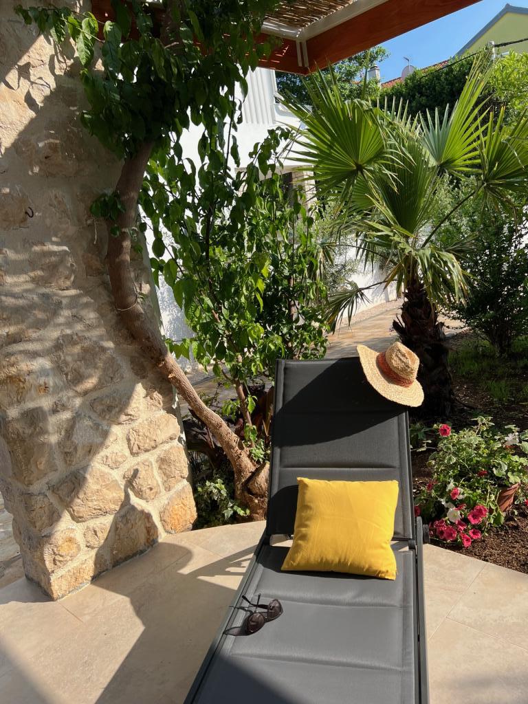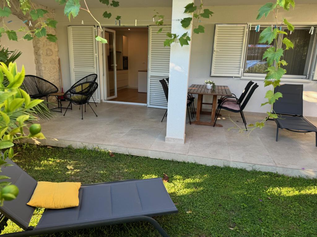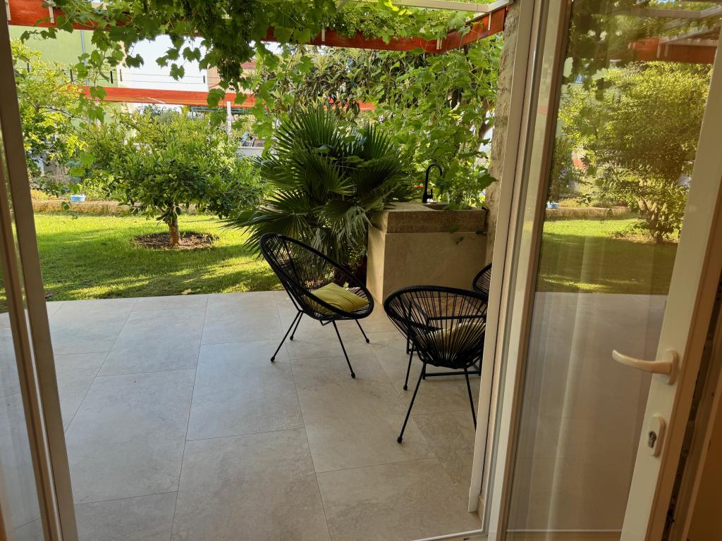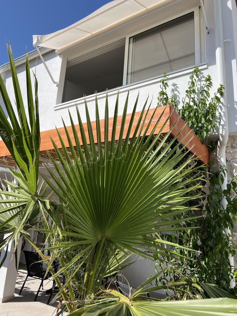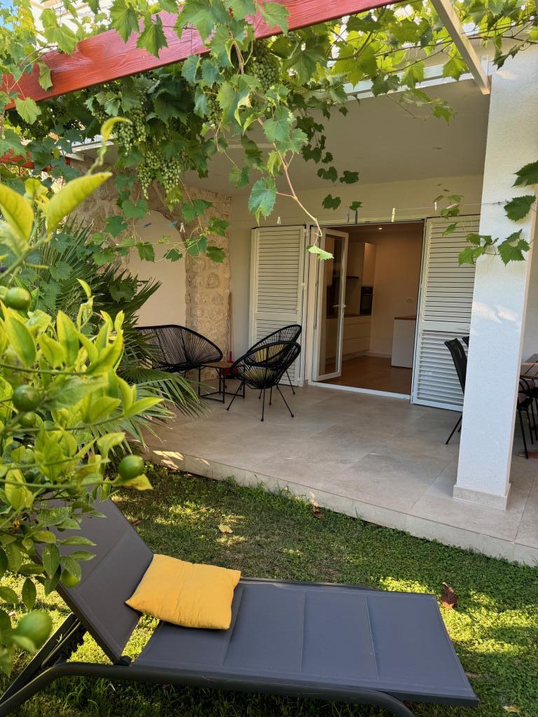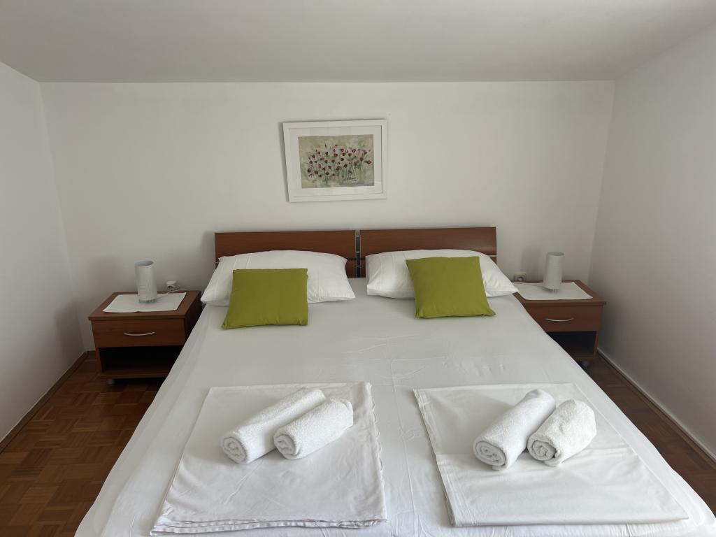 Popolnoma opremljeni apartmaji v bližini centra mesta v mirni ulici, druga vrstica mora.Objekt se nahaja 3 min hoje do centra mesta in 5 minut hoje do plaže.Objekt ima veliko zelenja in sence ter nudi gostom velik travnik terasama.Veliki primeren za igro djece.Parking za avtomobile hladu.Turisti lahko uporabljajo žar na dvorišču. Gostitelji so prijazni in gostoljubni in njegove izkušnje več kot 35 let v turizmu zagotavlja našim gostom najboljše storitve.