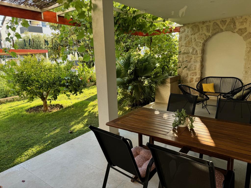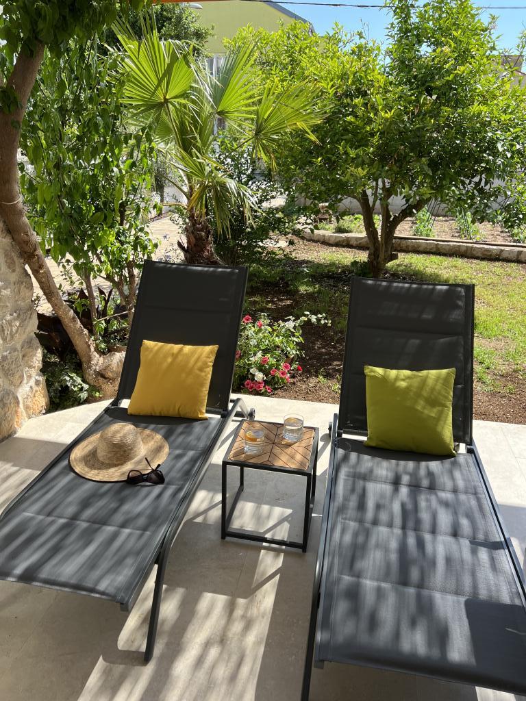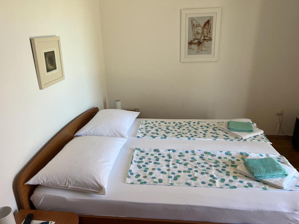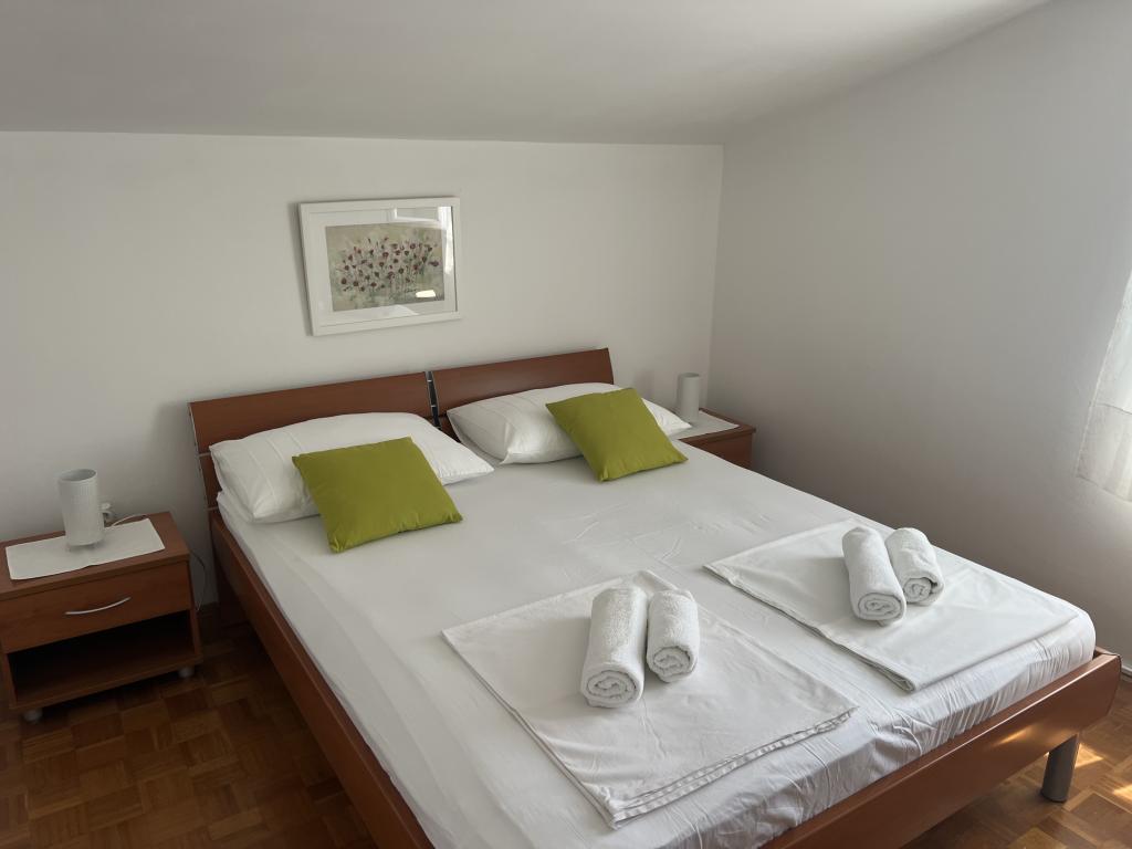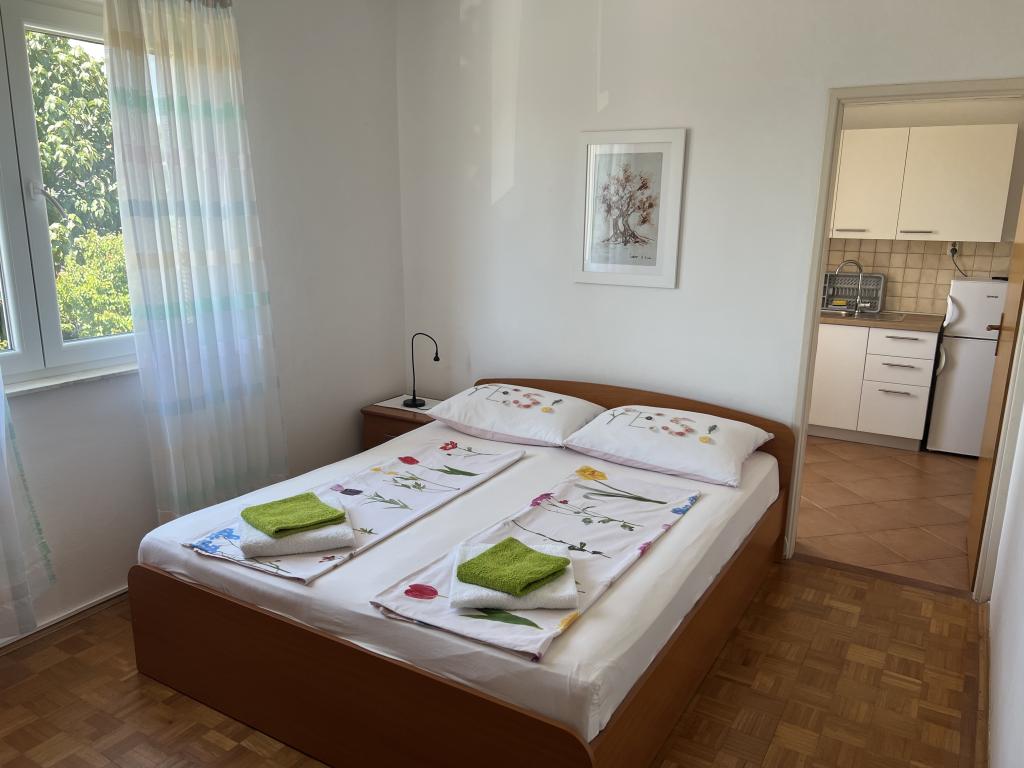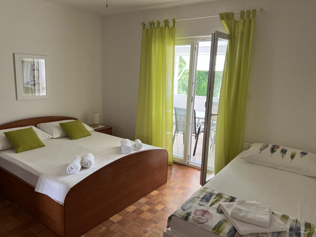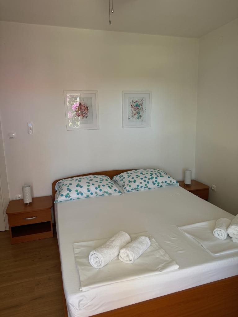 Popolnoma opremljeni apartmaji v bližini centra mesta v mirni ulici, druga vrstica mora.Objekt se nahaja 3 min hoje do centra mesta in 5 minut hoje do plaže.Objekt ima veliko zelenja in sence ter nudi gostom velik travnik terasama.Veliki primeren za igro djece.Parking za avtomobile hladu.Turisti lahko uporabljajo žar na dvorišču. Gostitelji so prijazni in gostoljubni in njegove izkušnje več kot 35 let v turizmu zagotavlja našim gostom najboljše storitve.