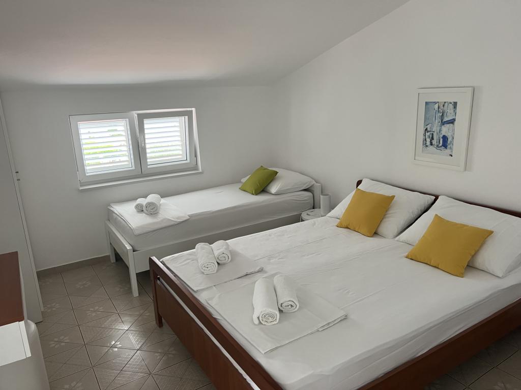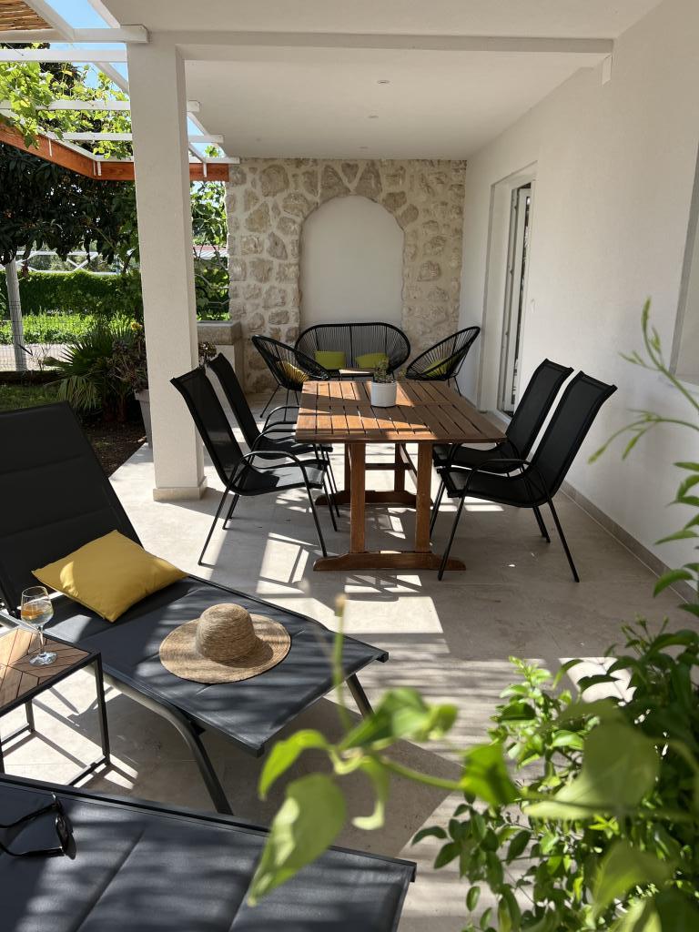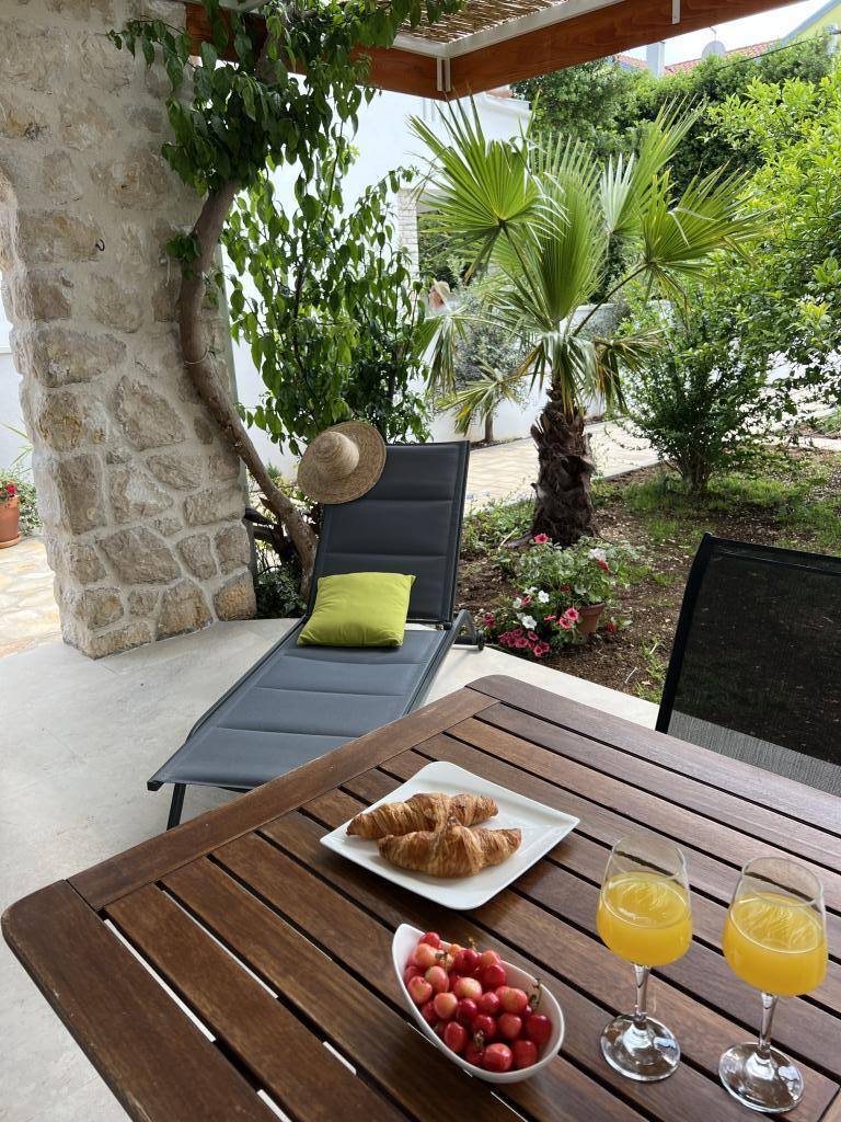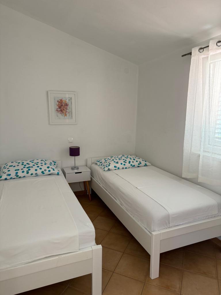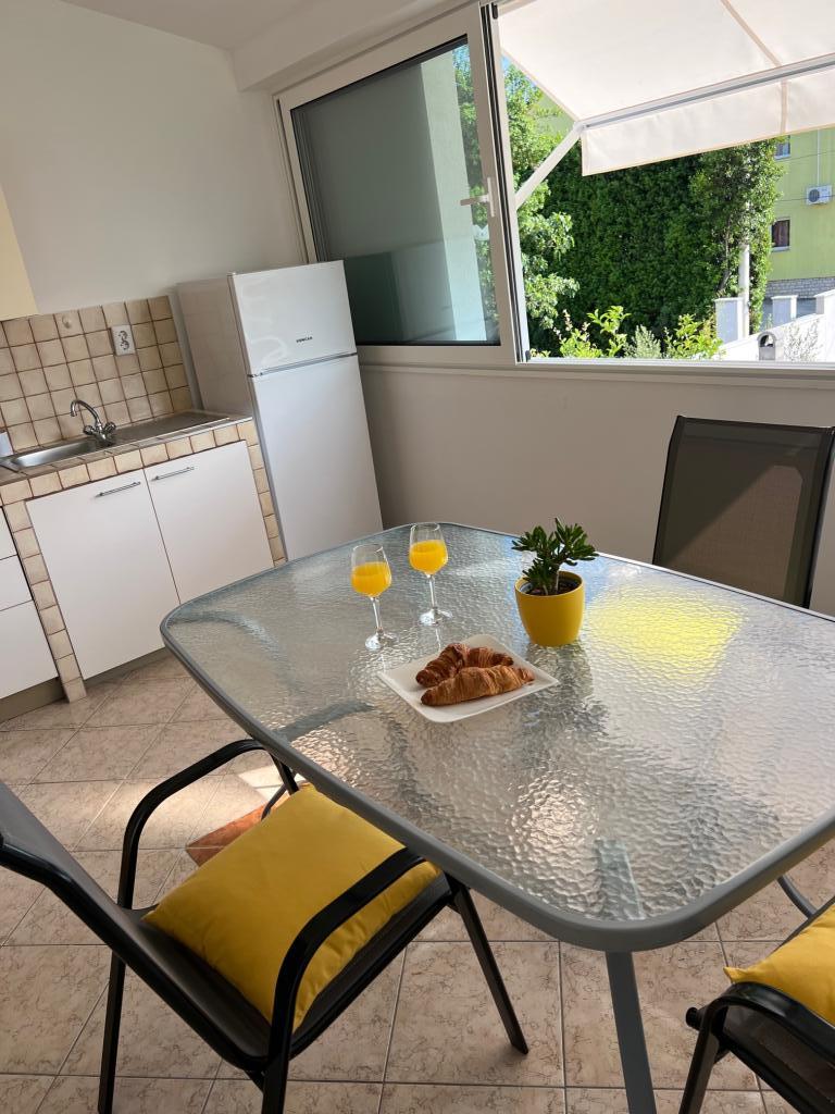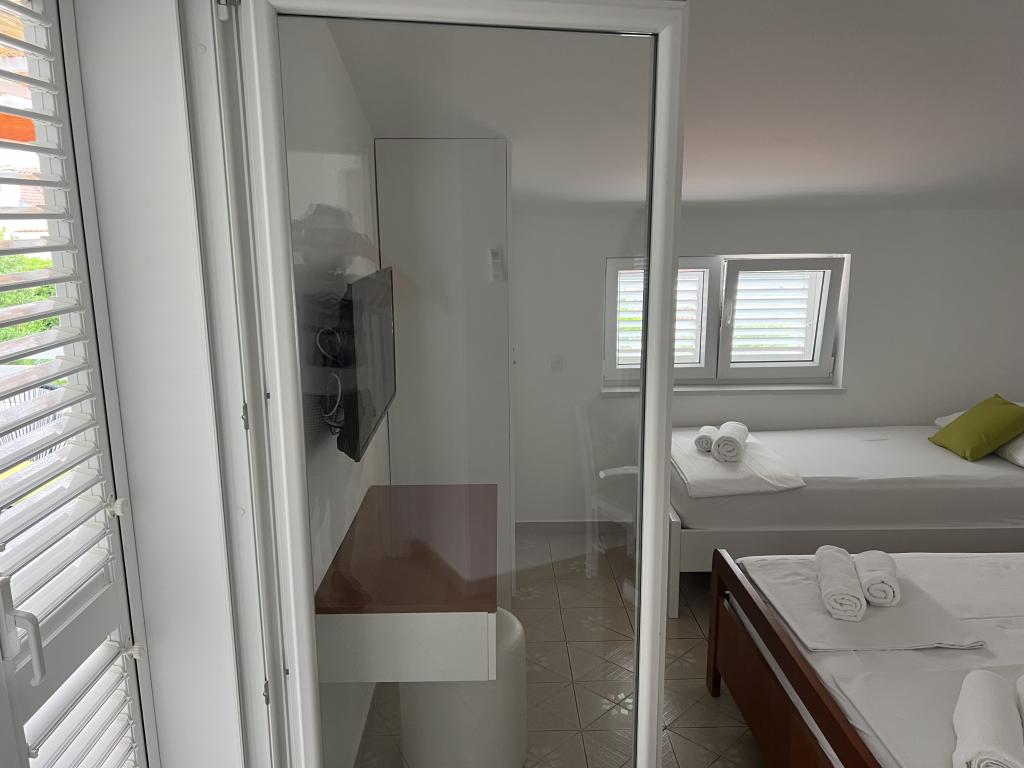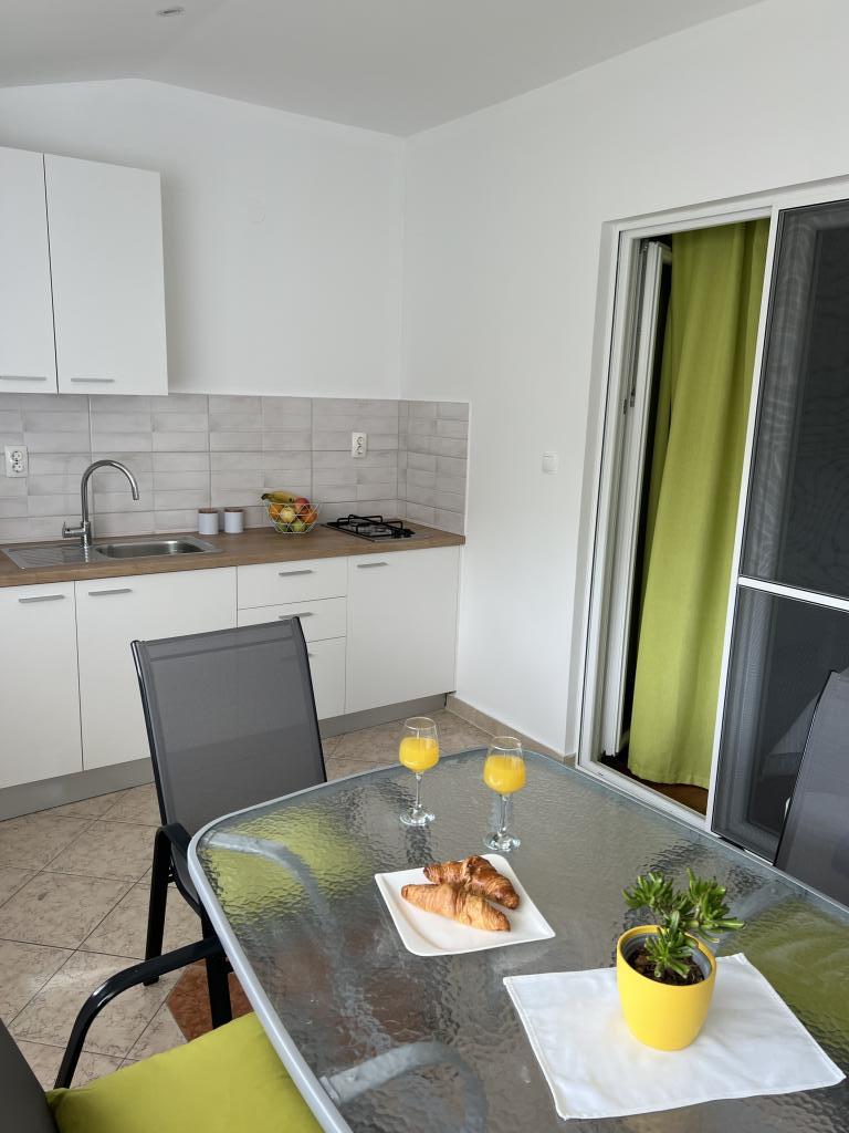Popolnoma opremljeni apartmaji v bližini centra mesta v mirni ulici, druga vrstica mora.Objekt se nahaja 3 min hoje do centra mesta in 5 minut hoje do plaže.Objekt ima veliko zelenja in sence ter nudi gostom velik travnik terasama.Veliki primeren za igro djece.Parking za avtomobile hladu.Turisti lahko uporabljajo žar na dvorišču. Gostitelji so prijazni in gostoljubni in njegove izkušnje več kot 35 let v turizmu zagotavlja našim gostom najboljše storitve.