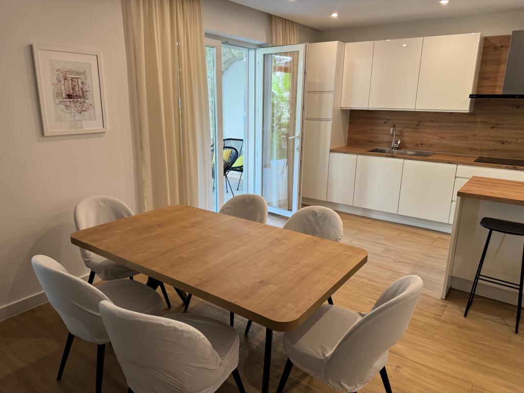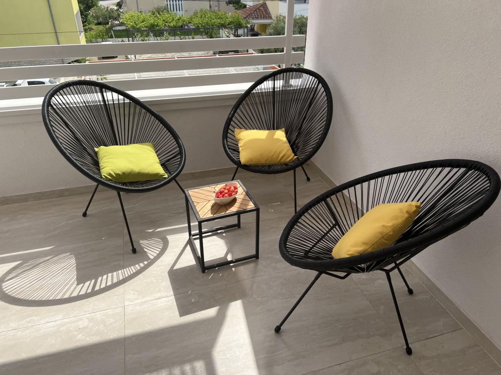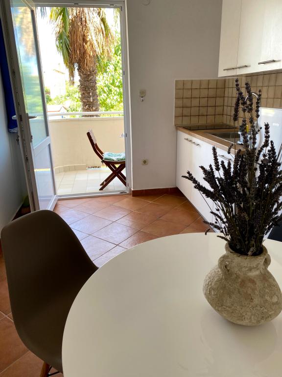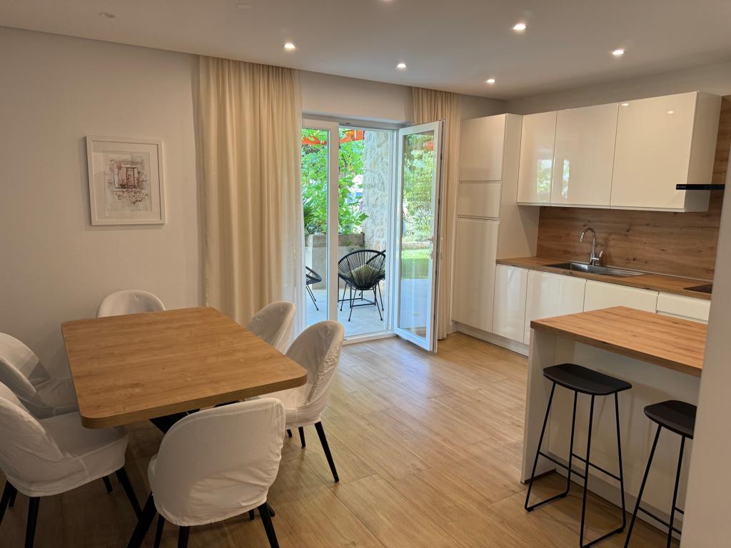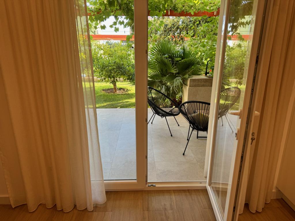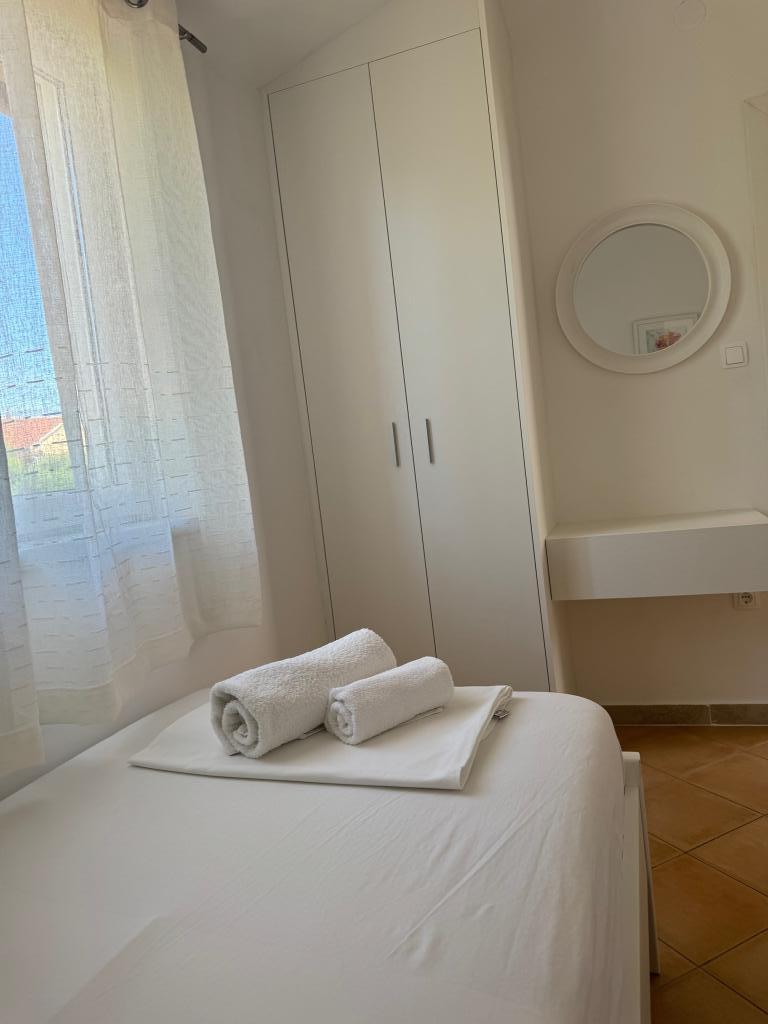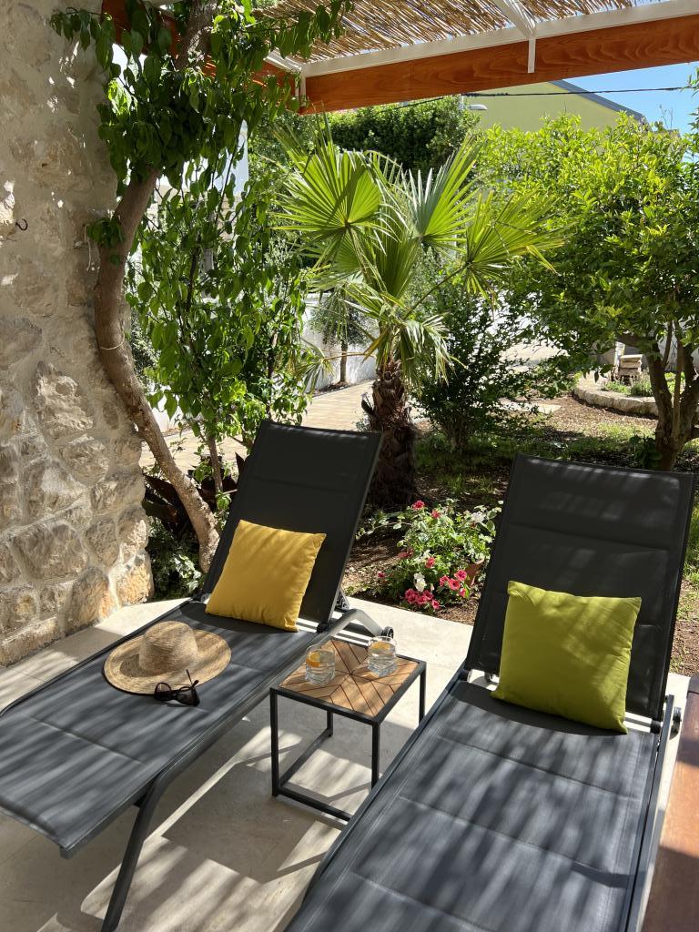 Popolnoma opremljeni apartmaji v bližini centra mesta v mirni ulici, druga vrstica mora.Objekt se nahaja 3 min hoje do centra mesta in 5 minut hoje do plaže.Objekt ima veliko zelenja in sence ter nudi gostom velik travnik terasama.Veliki primeren za igro djece.Parking za avtomobile hladu.Turisti lahko uporabljajo žar na dvorišču. Gostitelji so prijazni in gostoljubni in njegove izkušnje več kot 35 let v turizmu zagotavlja našim gostom najboljše storitve.