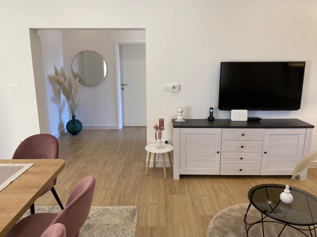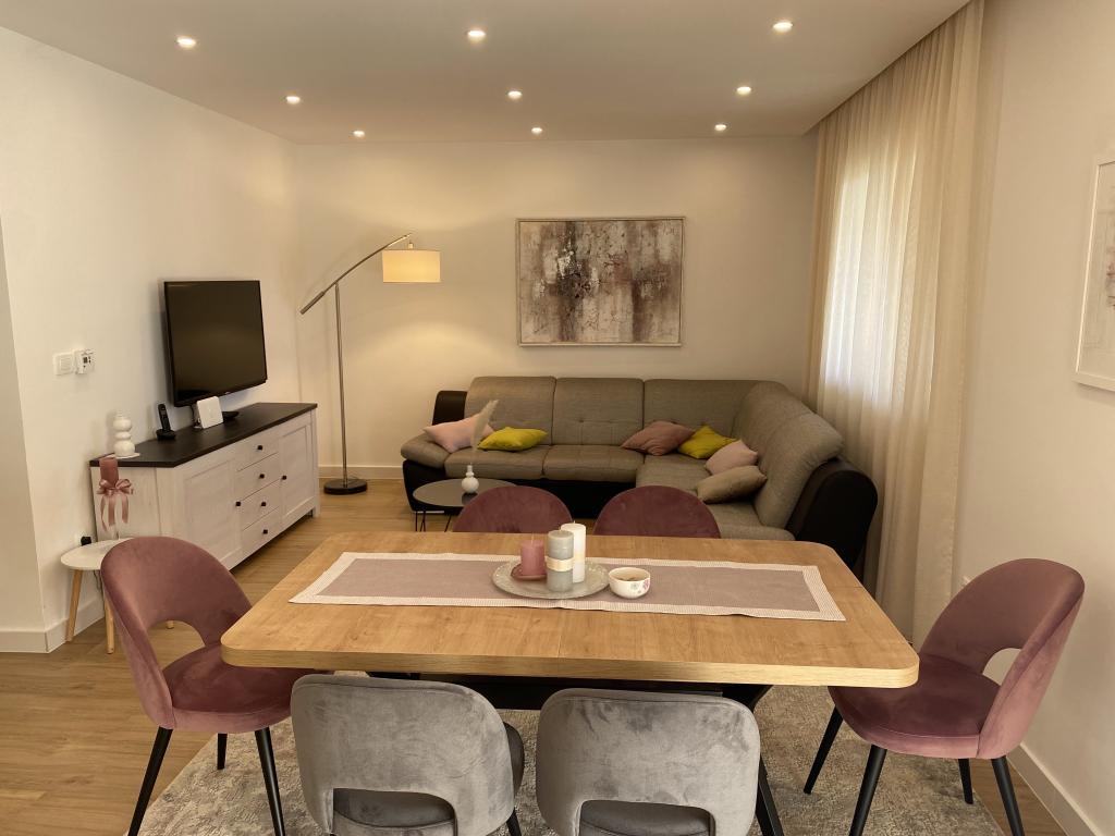 Trenutno smo tukaj, vse je res super, čisto, kontaktirali smo gospo Danijelo, ki je bila prijazna, prišli smo, tudi gospa Ksenija nas je sprejela s takim nasmehom, prijazna, ustrežljiva, draga ... imate vse besede pohvale od nas! Apartma čist, prostoren, postelja udobna, posteljnina diši po mehčalcu, brisače bele kot sneg, vseh 5! Stanovanje je res blizu vsega, nekaj minut peš. Veliko parkirišče, kuhinja opremljena z vsem možnim, dostop do interneta, mir in tišina... vse kar potrebujemo za počitnice. Upamo, da se bomo še vrsto let vračali k vam!
