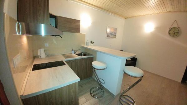 Hiša ima skupaj dva nova in moderno opremljena apartmaja v pritličju. Vsaka ima spalnico z zakonsko posteljo in dodatnimi ležišči. Za dodatno uživanje v počitnicah imajo gostje tudi teraso s sedeži in žarom. Za vse goste je na voljo zasebno parkirišče in brezplačen brezžični internet. Apartma Studio je samostojna kamnita hiša v ulici kralja Petra Svačića. Zaradi oddaljenosti apartmajev od središča kraja in plaže je gostitelj vsem svojim gostom zagotovil dnevne vozovnice za parkiranje, ki veljajo za Pakoštane.