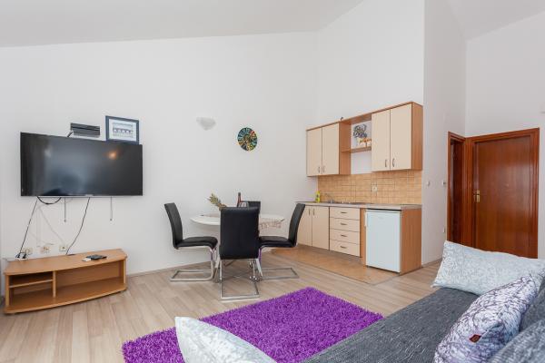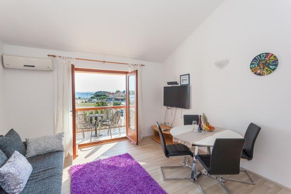 Velik, čist in lepo urejen apartma na izjemni lokaciji. V bližini - ni potrebe po uporabi avtomobila, več lepih plaž, trgovine 5 m stran, kavarne, restavracije in lastno parkirišče tik pred apartmajem. Vrhunska oprema apartmaja - vse za kuhanje, velik TV z obilico vsebin, WiFi, klima, velik balkon s tendo in čudovitim pogledom na morje, ki zaradi svoje lege ni vroče in lahko uživate ves dan. Poleg vsega pa je dobrodošlica, toplina in dostopnost lastnika apartmaja zagotovilo za idealne počitnice. Vse najboljše in zagotovo se bomo vrnili vsako leto.