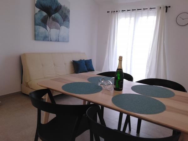 V prenočišču smo preživeli 9 noči, 2 odrasli osebi. Apartma je čist, razgled je fantastičen. Lokacija je odlična, plaža je le nekaj korakov stran, tako da je kopel zelo udobna, vendar je center mesta oddaljen le nekaj sto metrov. Trgovina, pekarna in restavracija so dosegljive v nekaj minutah. Gostitelji so bili prijazni in ustrežljivi. Pridemo drugič.