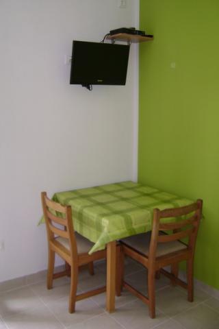Lokacija je zelo dobra. Najprej sploh ni bilo brisač, o milu za roke samo sanjaš, ob zelo veliki kopalnici je samo eno obešalo za eno brisačo, kam obesti ostale brisače se znajdi kakor veš in znaš. Stara razmajana klubska miza, star televizor, zelo glasna klima (občasno škrtanje in ropotanje), hladilnik je sicer deloval a notranjost zarjevela in odlomljena kluka, posode za kuhanje malo (ena ponev in 4 velike posode). Skratka dopust je bil pokvarjen že v štartu.