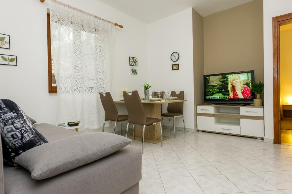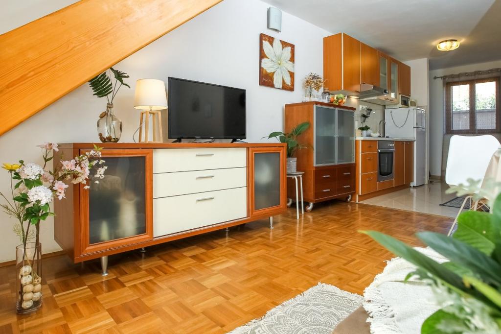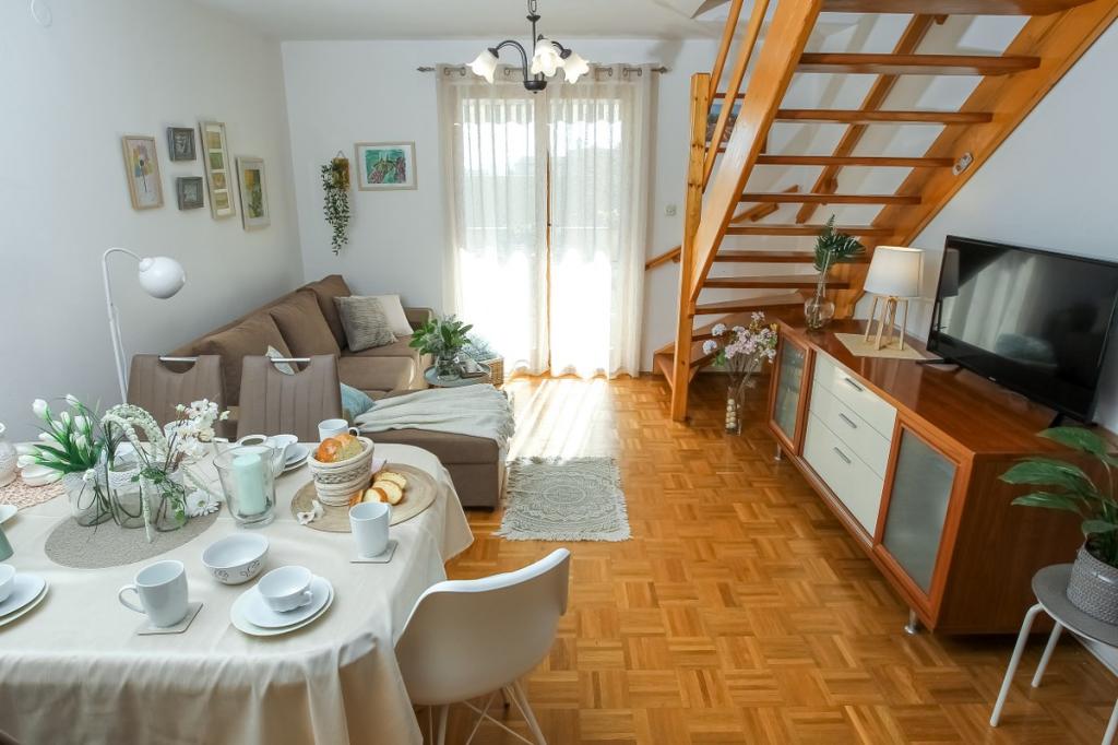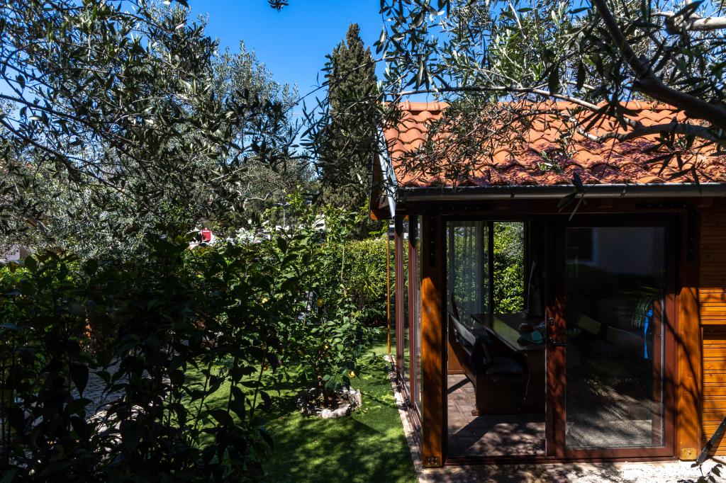 Naš objekt izžareva prijetno, domače vzdušje, kjer se gostje lahko počutijo sproščeno in resnično dobrodošlo. Nahaja se na odlični lokaciji, le 400 metrov od središča mesta, medtem ko so vse potrebne ugodnosti v dosegu roke – najbližja trgovina je oddaljena le 30 metrov. Hiša je sestavljena iz treh namestitvenih enot, vsaka s svojim balkonom, kjer lahko uživate v jutranji kavi ali sproščenih večerih. Največje stanovanje ima dodatno tri prostorne terase, ki zagotavljajo še več prostora za bivanje na prostem in skupne trenutke. Gostom je na voljo tudi skupni zunanji prostor, ki vključuje stekleno paviljon s kuhinjo, notranjim kaminom in veliko mizo, idealno za druženje in prehranjevanje na prostem. Ta topel in prijeten prostor se nahaja sredi zelenja in ponuja mirno okolje za sprostitev, pogovor in ustvarjanje lepih spominov. Namestitev je primerna za različne tipe gostov, še posebej pa je prijetna za družine z otroki, ki se lahko brezskrbno igrajo v varnem in prostornem okolju. Vsako stanovanje ima tudi lastno zunanje parkirno mesto, da bo vaše bivanje čim bolj preprosto in brezskrbno. Kot gostitelji smo vam vedno na voljo za nasvete, priporočila ali pomoč pri organizaciji vašega bivanja – želimo, da se počutite kot doma in da iz Pakoštanov odnesete le lepe spomine.