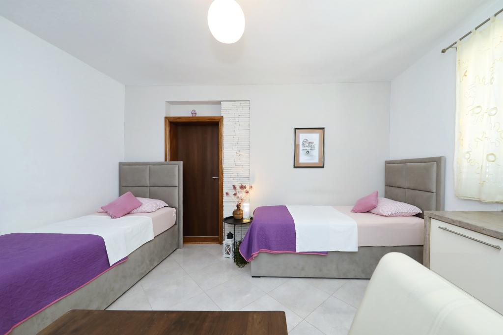 V vzhodnem delu Pakoštane ponujamo 3 apartmaje. Apartmaji se nahajajo v družinski hiši, tik ob plaži Janice. En apartma je v pritličju in dva apartmaja se nahaja v 1. nadstropju. Apartmaji imajo satelitsko televizijo in klimatsko napravo.