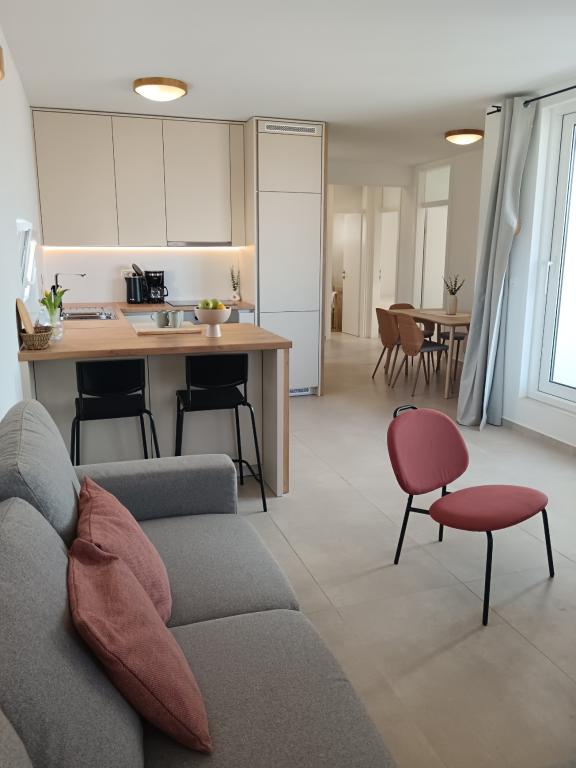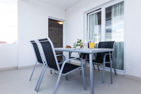 Bili smo tam 9 dni, konec avgusta in v začetku septembra 2016, in smo imeli res veliko časa. Namestitev je bil čist, zelo lepo, udobno, z vsemi potrebnimi potrebami. Kuhinja je dobro opremljena. Stanovanje ima veliko, lepo teraso - balkon dosegljiv iz kuhinje in iz sobe, kot tudi. tam smo bili z dvema otrokoma, stara 3 leta in dojenček star 9 mesecev in res ljubil ta kraj. Plaža je zelo blizu, še bolje z dvema majhnimi otroki. Središče mesta je blizu, tudi nekaj živil in restavracije. Hvala za super dopust, bomo z veseljem ponovno obiskali.