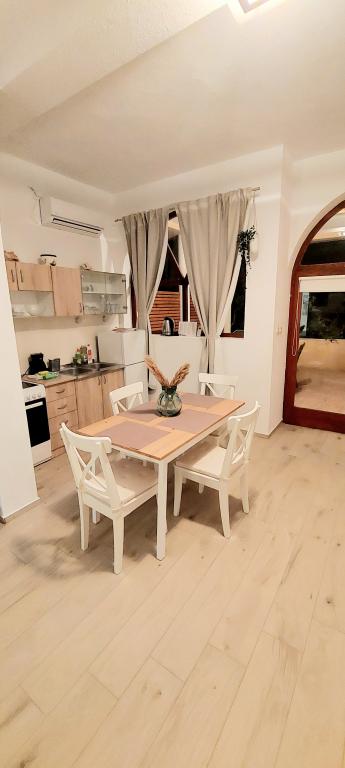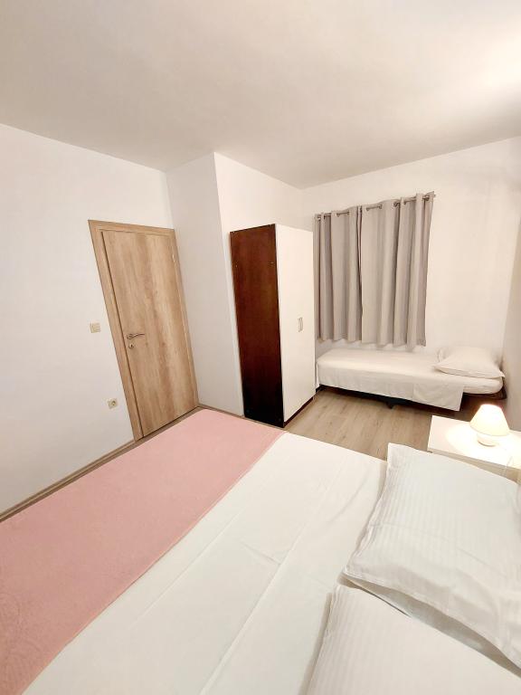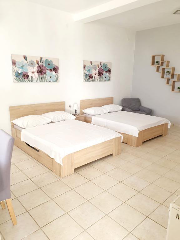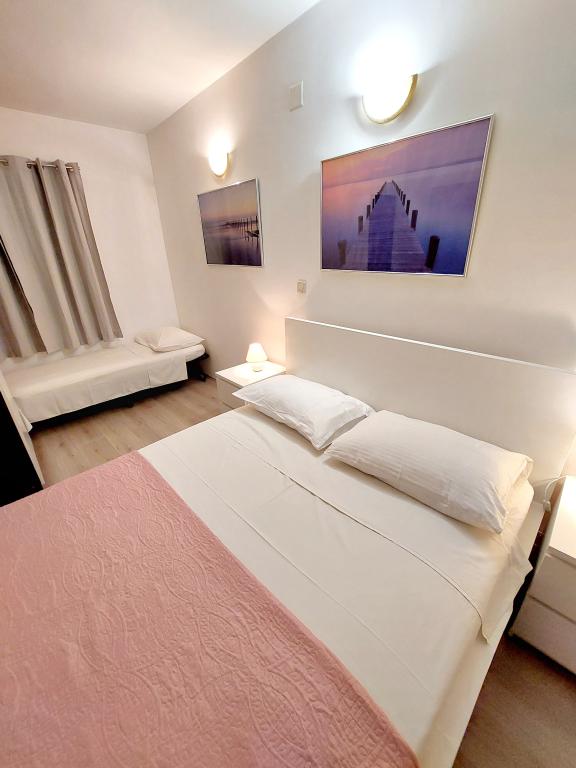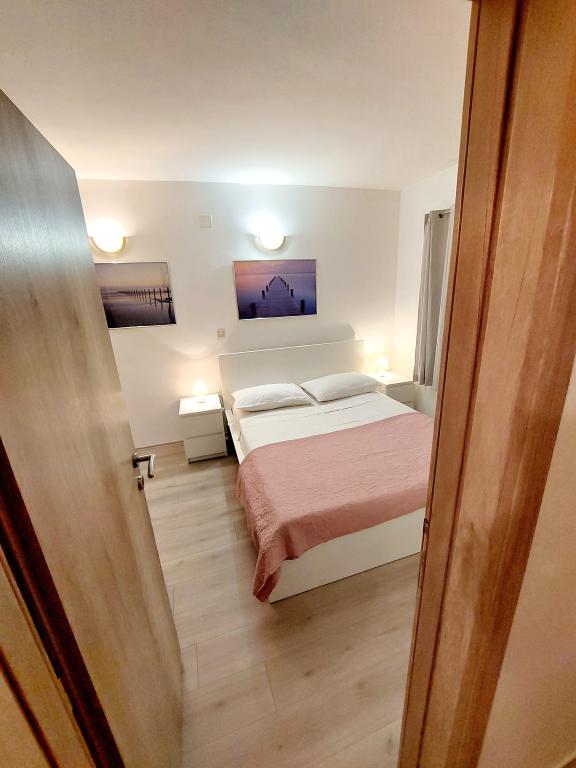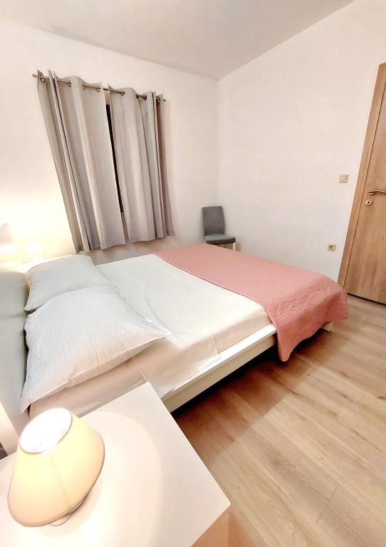 V apartma 2+2 sva preživela 7 dni. Kratkih, a sladkih. Apartma velik, čist in vseboval je vse kar potrebuješ. Postelje udobne, velika terasa in okolica zelo lepa. Do morja minuta peš. Do trgovine 3 min. Peš in do prve gostilne 1 min. Lastnika zelo dobra gostitelja. Prijazna, poštena in zelo ustrežljiva. Drugo leto zagotovo spet k njima.