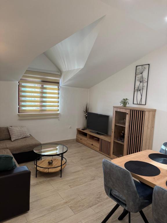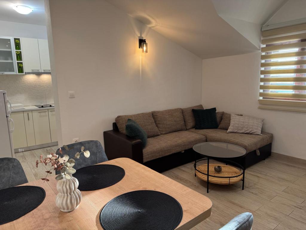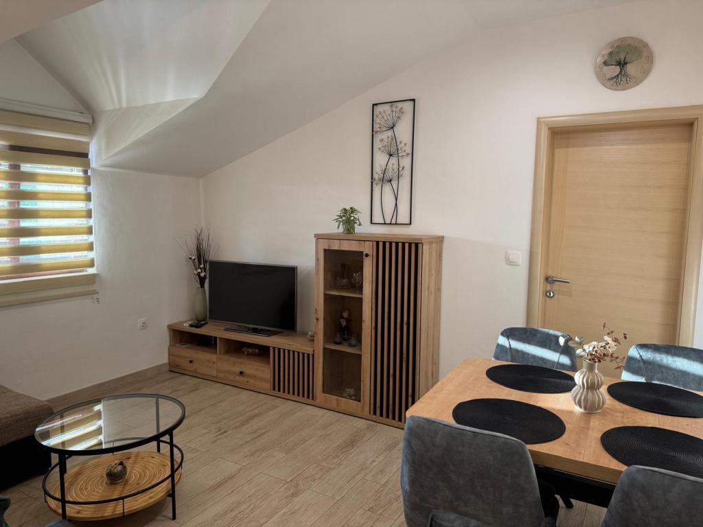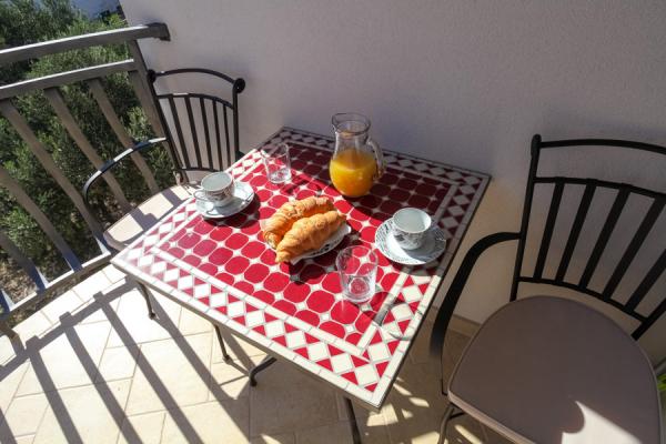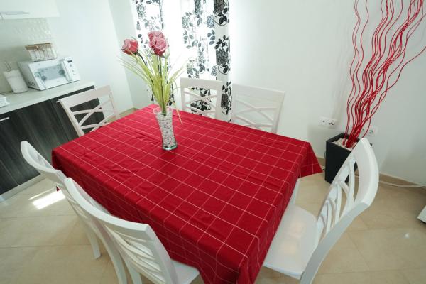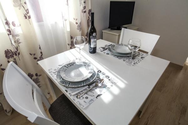 Polega prijaznih lastnikov, ki bivajo v hiši, je nedvomno velika prednost odlična terasa, skupaj z opremo. Stanovanje je dobro hlajeno in izjemno okusno opremljeno. Parkirnega prostora na dvorišču je dovolj, nikoli ni treba iskati prostora, ko se vcrneš nazaj z avtom. Dostop in čistoča nastanitve in vsega okoli je na najvišjem nivoju. Edino pri posteljah pa bi se dalo narediti kaj več na udobju. Z veseljem se bomo še vrnili.