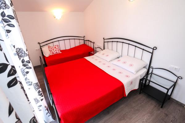 Nudimo namestitev v družinski hiši v sodobnih in udobnih apartmajih. Apartmaji se nahajajo 250 m od plaže in 200 m od centra, v bližini so trgovine in restavracije ter si za sproščujoč dopust vse na dosegu roke. Bodite naš gost in preživite nepozabne počitnice v naših namestitev!