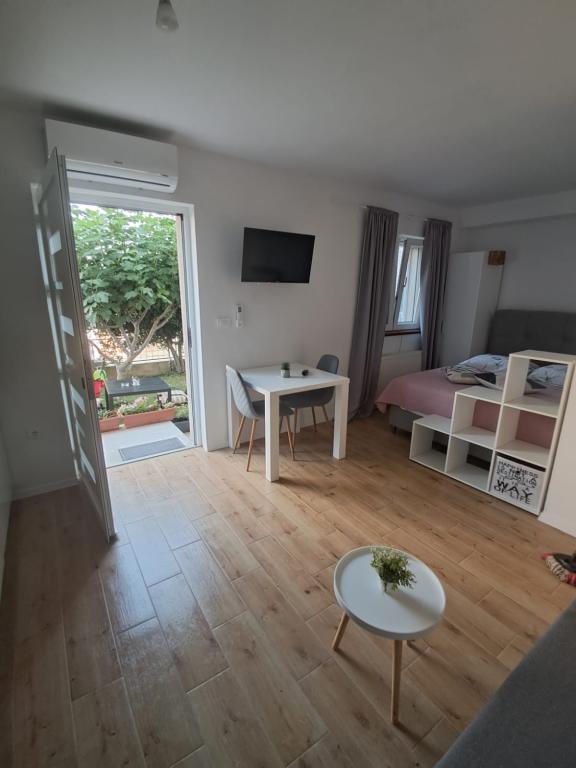 Stanovanje se nahaja v bližini glavne ceste, tam je tudi bencinska črpalka in večja trgovina. Okolica je mirna in prijetna za bivanje, v bližini je Vransko jezero in iz apartmaja lahko vidite jezero. Do centra mesta in plaže je približno 10 minut hoje.