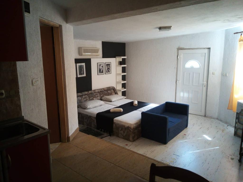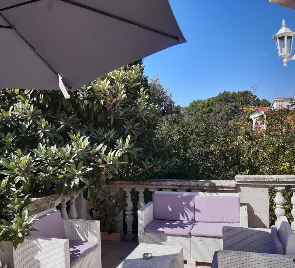 Apartmaji se nahajajo v slepi ulici, brez hrupa in prometa, tako da lahko v miru uživate v sproščujočem vzdušju. Vsak apartma ima ločen vhod in zasebno teraso, kjer se lahko kadi. Apartmaji so opremljeni z vsem, kar potrebujete (posteljnina, brisače, posoda...). Do plaže in centra je 5-6 minut hoje. V bližini apartmaja sta restavracija in pekarna. Apartma 1 se nahaja v prvem nadstropju z dvema spalnicama, kopalnico, predsobo, kuhinjo z dnevno sobo in teraso. Apartma 2 se nahaja v pritličju in ima zasebni vrt. Sestoji iz spalnice, dnevne sobe s kuhinjo, kopalnice in terase. Studio apartma se nahaja v prvem nadstropju s teraso - spalnica, kopalnica in kuhinja.