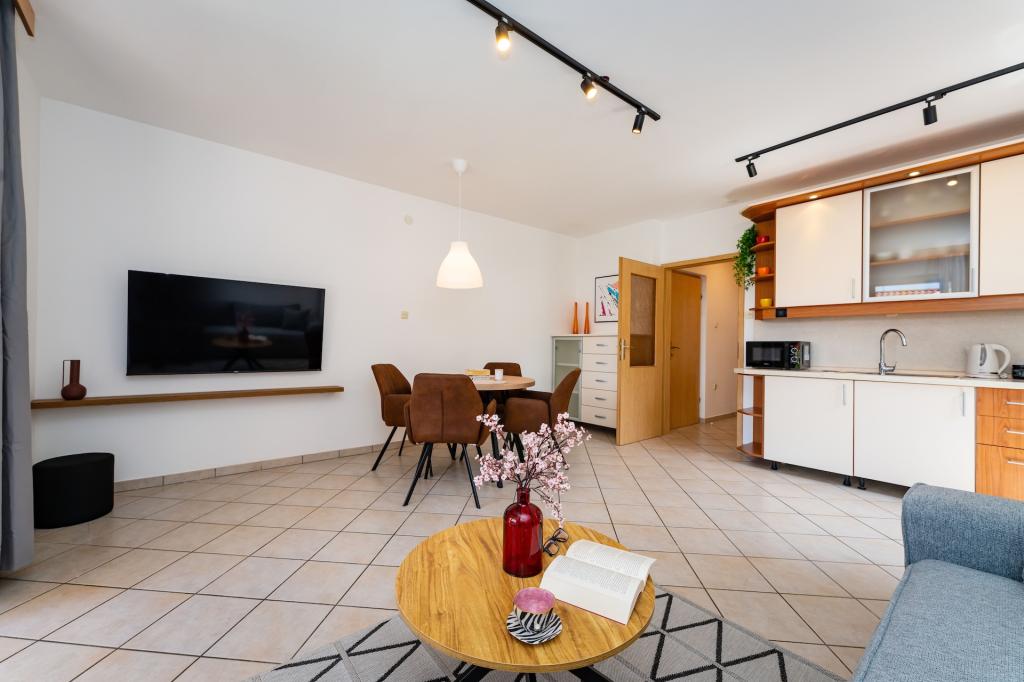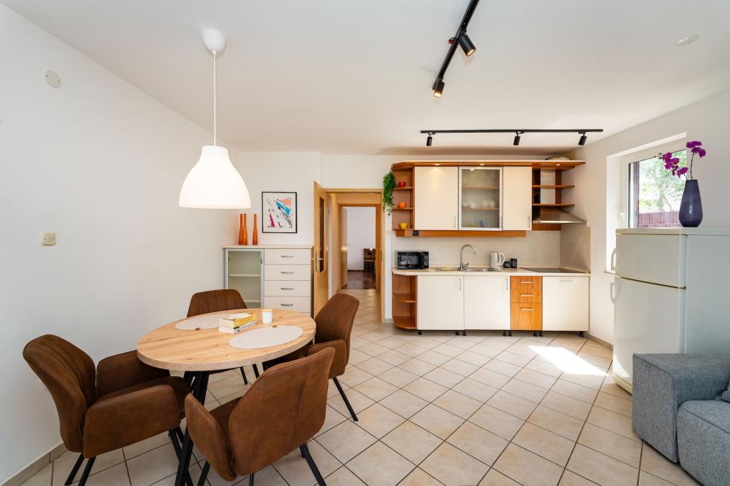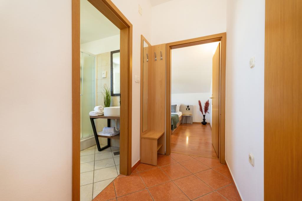 Preberite več Namestitvene enoteZa vse apartmaje je največje dovoljeno število oseb 4. Na našem parkirišču je zagotovljeno eno parkirno mesto na apartma. Majhni psi so dovoljeni, vendar s predhodno najavo in na zahtevo. Vstop v apartmaje je možen od 14.00 ure na dan prihoda. Prosimo, da apartma zapustite do 10.00 ure na dan odhoda. V apartmajih in sobah ni dovoljeno več oseb, kot je določeno. Pripeljati goste v apartma ali sobo za prenočitev je mogoče le z dovoljenjem lastnika. Na dan odhoda ste dolžni z gostiteljem pregledati apartma ali sobo in povrniti morebitno škodo. V apartmaje ni dovoljeno vnašati orožja, prepovedanih mamil ali drugih nevarnih in/ali vnetljivih snovi. Lastniki apartmajev ne odgovarjajo za morebitno izginotje gostovih stvari in dragocenosti. Iz apartmaja ni dovoljeno odnašati inventarja (brisače, odeje, dežniki itd.).
