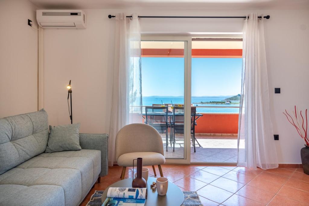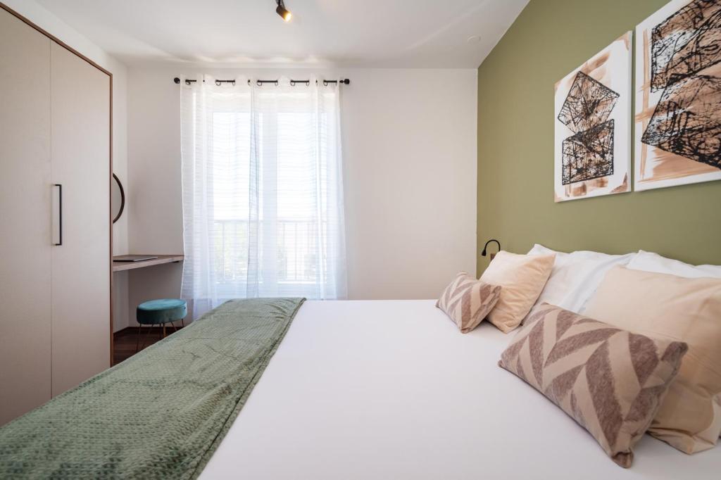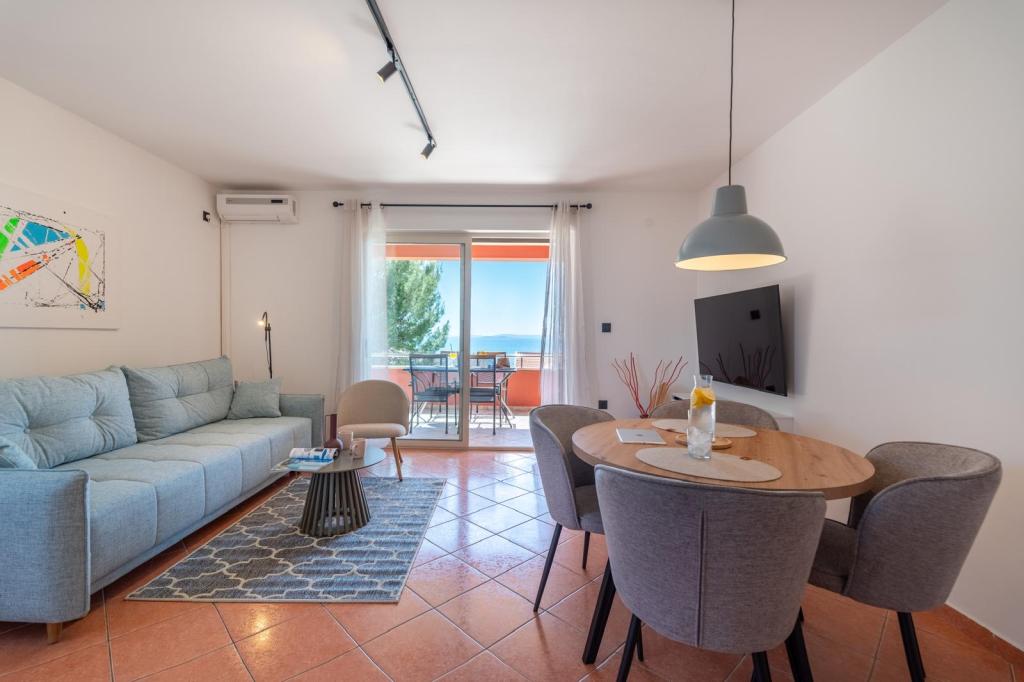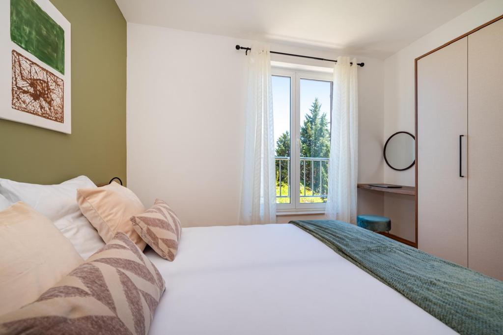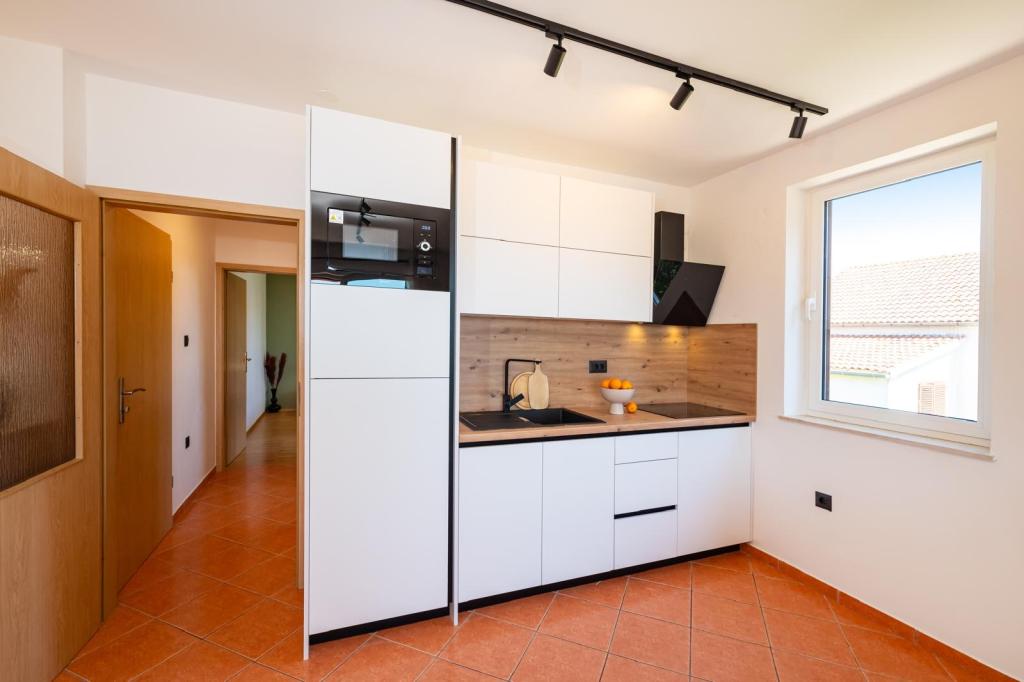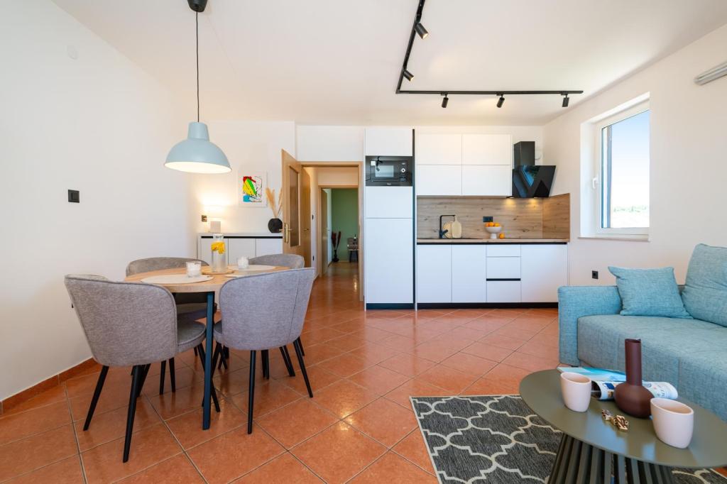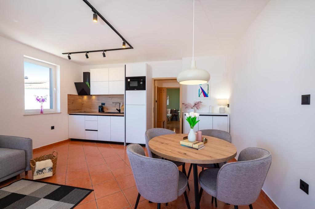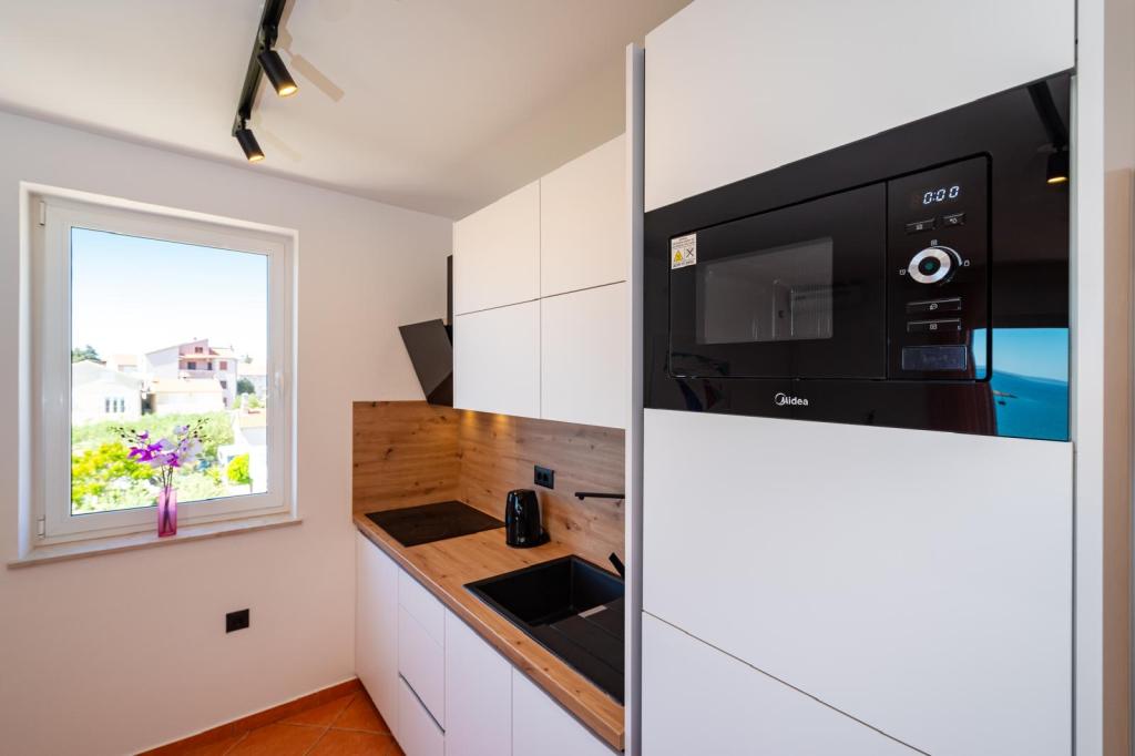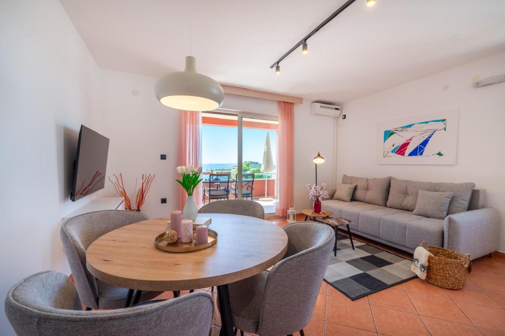 Vila San Marino ima osem enakih apartmajev, ki se nahajajo v treh nadstropjih. V vsakem nadstropju sta dva apartmaja. Apartmaji imajo skupno površino 55 m2 in vsebujejo dvoposteljno spalnico, dnevno sobo z raztegljivim ležiščem, kuhinjo, jedilnico in veliko teraso. Vsi apartmaji so v prvi vrsti ob morju in so obrnjeni proti morju. Opremljeni so s klimatsko napravo za hlajenje in ogrevanje. Kuhinje so opremljene s pripomočki za pripravo in serviranje hrane in pijače v ustreznih količinah, hladilnikom, zamrzovalnikom, električno kuhalno ploščo, plinskim štedilnikom in napo, kopalnice pa imajo tuše. Vsak apartma ima televizor z ravnim zaslonom s satelitsko televizijo in anteno ter dostop do interneta. Terase imajo sedežno garnituro.