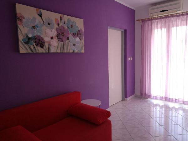 Apartmaji Villa Žaklina, Pakoštane, Punta se nahajajo na mirni lokaciji, idealni za počitnice v borovem gozdu, le 100 metrov od morja. Gostitelji ponujajo ekološko pridelano zelenjavo iz svojega vrta ter domače žganje in vino. Že vrsto let se ukvarjajo s turizmom in mirno jim lahko zaupate svoj letni dopust.