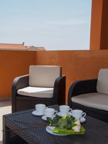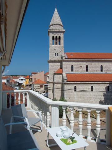 Šarmanten in opremljen apartma z velikimi terasami, ki se nahaja v centru Pakoštana z zasebnim vhodom na glavno plažo in dodatno vsebino za goste (žar, zunanja terasa, parkirišče).