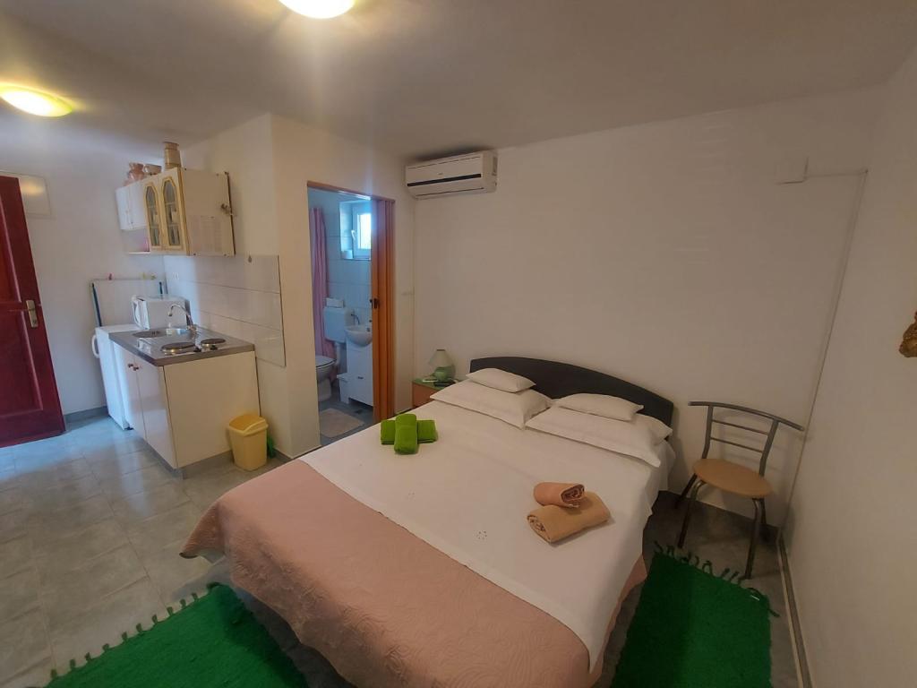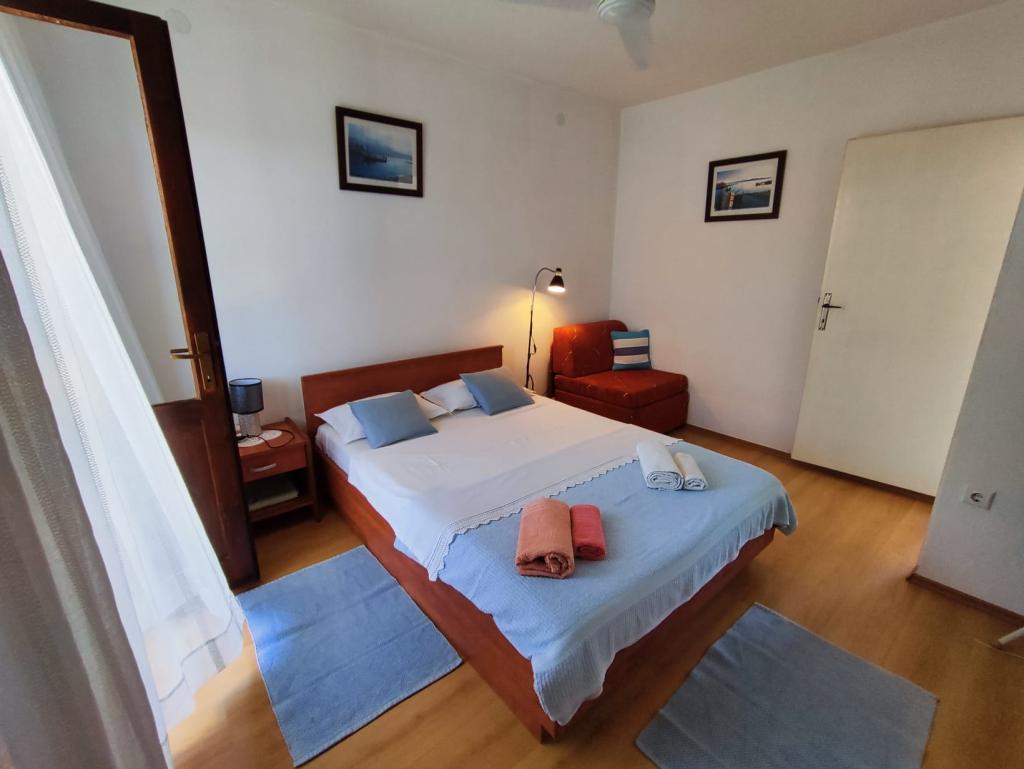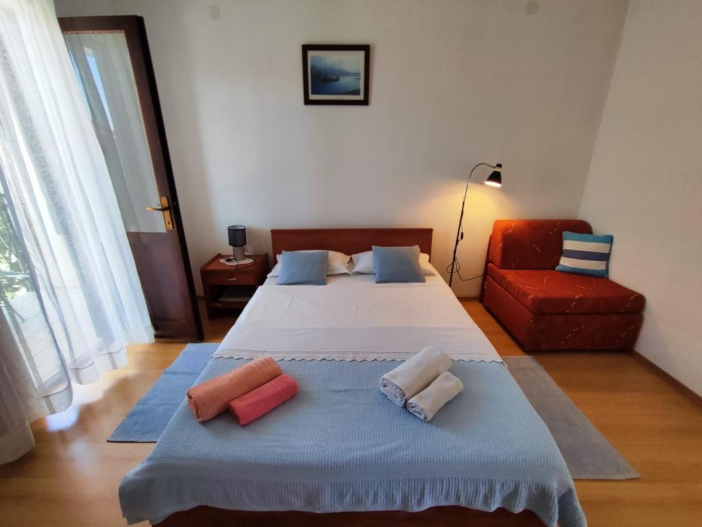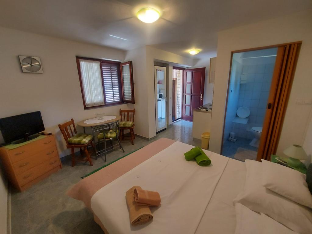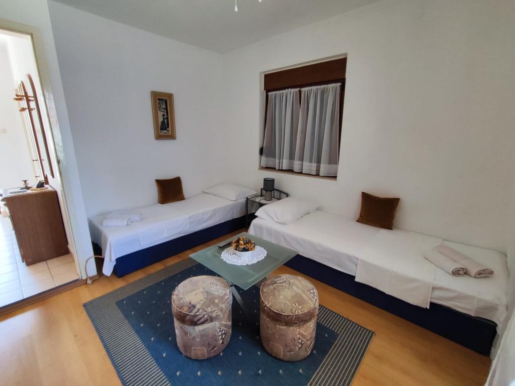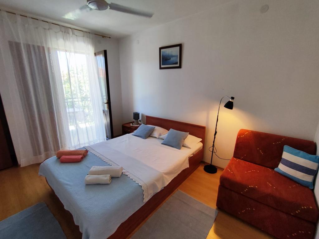 Družinska hiša se nahaja na mirni lokaciji v bližini plaž in centra mesta. Ponuja udobno namestitev v apartmaju za 4 do 5 oseb in studiu za 2 osebi in otroka (do 12 let). Nahaja se nekaj minut hoje od centra mesta in plaž. V prijetnem ambientu lahko preživite počitnice z družino ali v dvoje in uživate v poletnih večerih na balkonih in čudovitem vrtu.