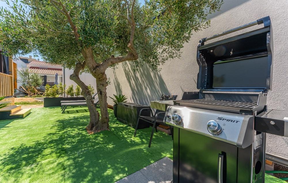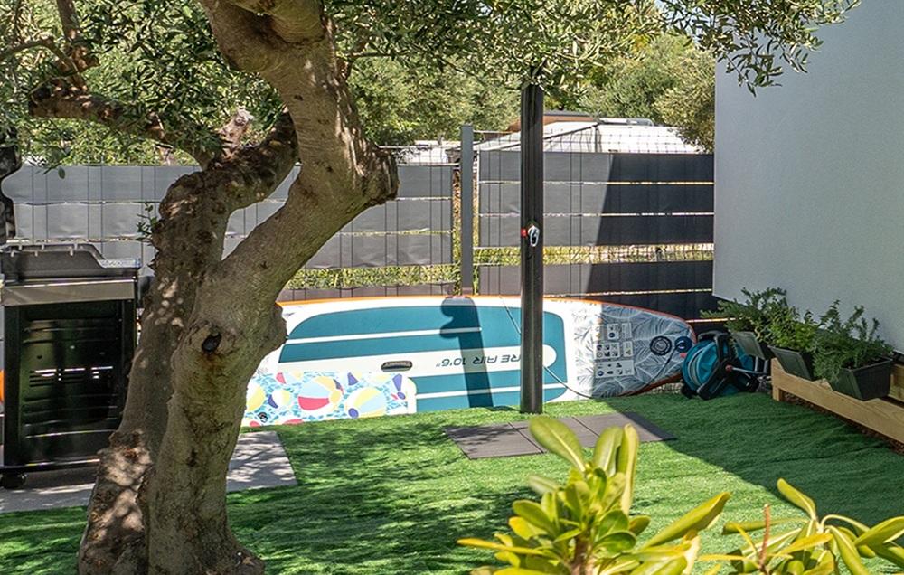 Gostom so na voljo pralni stroj, pomivalni stroj, klimatska naprava, zunanji in notranji hladilnik, ventilator na terasi, TV v dnevni sobi in na terasi. Hiša ima dve spalnici s posteljami širine 160 cm. Postelje so opremljene s kakovostnimi vzmetnicami, nadvložki za vzmetnice in satenasto posteljnino. V dnevni sobi je raztegljiv kavč za eno dodatno osebo. Kuhinja je popolnoma opremljena s posodo in kuhinjskimi aparati: aparat za kavo, pečica, mikrovalovna pečica, opekač kruha ... Na dvorišču imajo gostje dostop do žara, ležalnikov in dveh SUP desk. Hiša ima hitri internet StarLink.