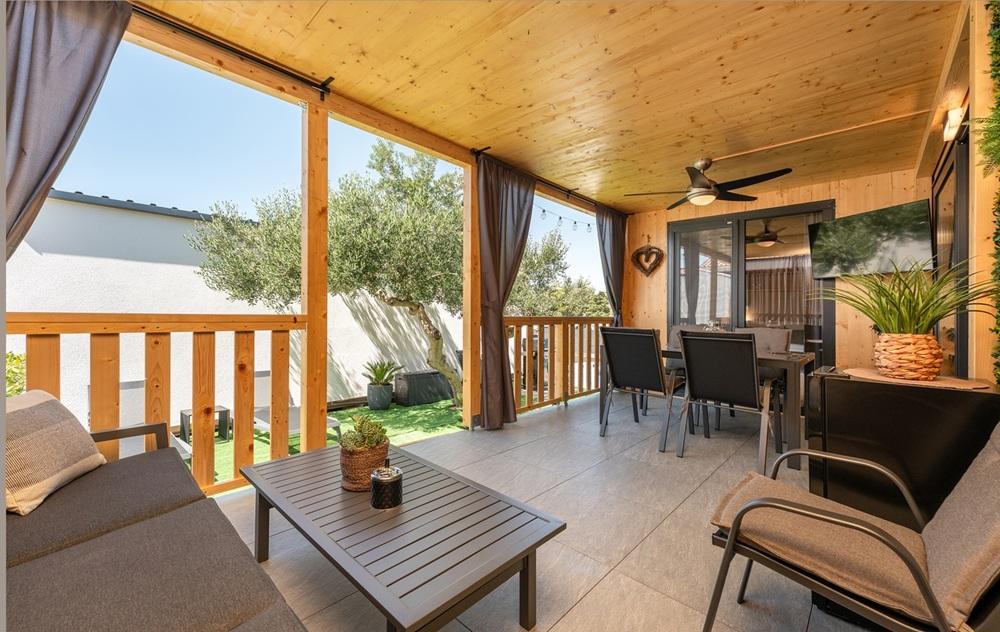 Visokokakovostna mobilna hišica "ENJOY BY BEACH" - ob plaži Janice. Mobilna hišica "Enjoy by Beach" se nahaja v 4* kampu Skalinada, le 100 m nad plažo Janice in 800 m od centra Pakoštana. Hiša je popolnoma nova in visokokakovostno opremljena. Med vašim bivanjem vam je lastnik hišice na voljo za vse vaše potrebe in želje.
