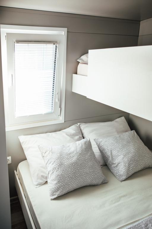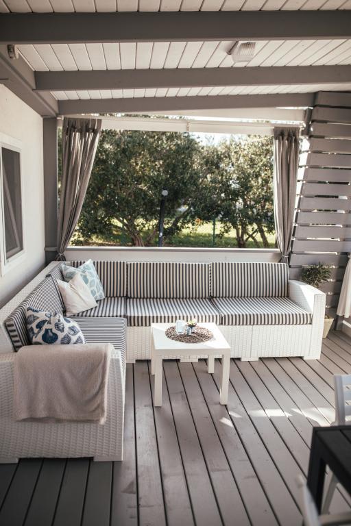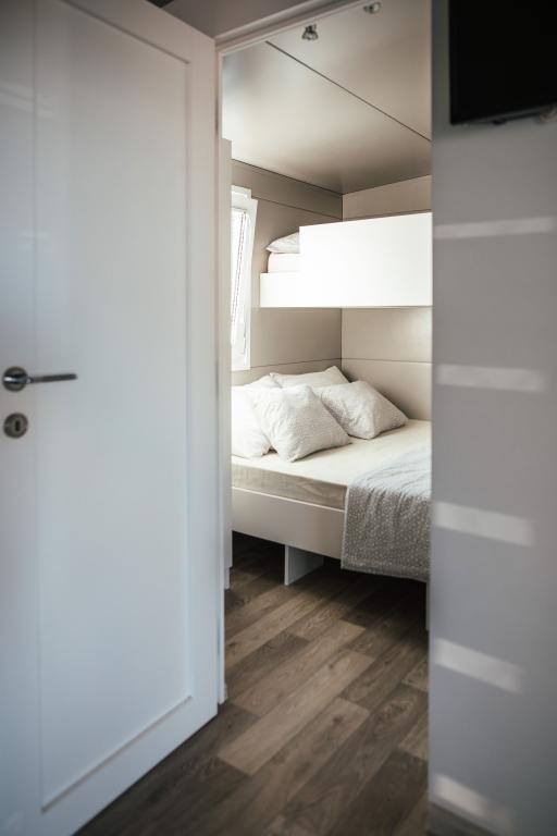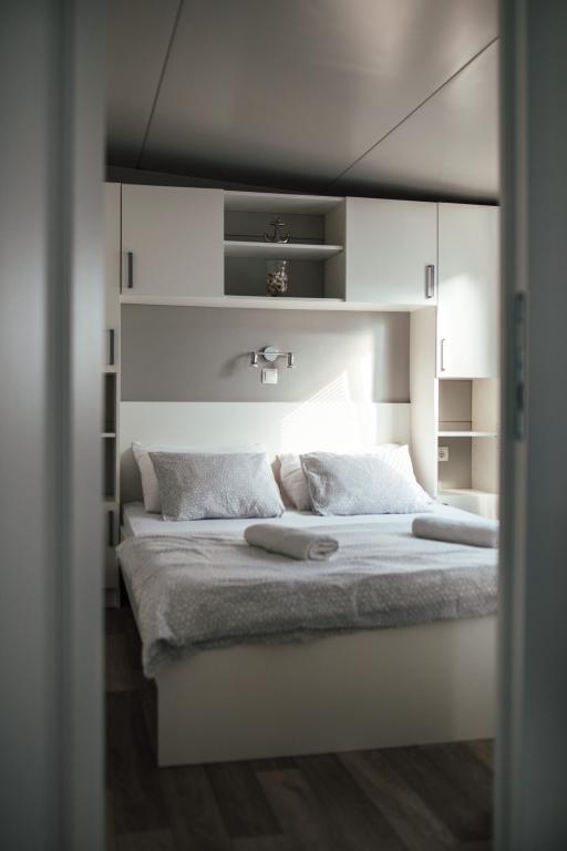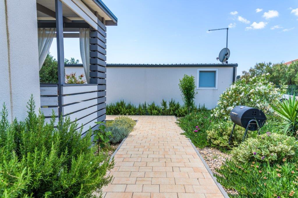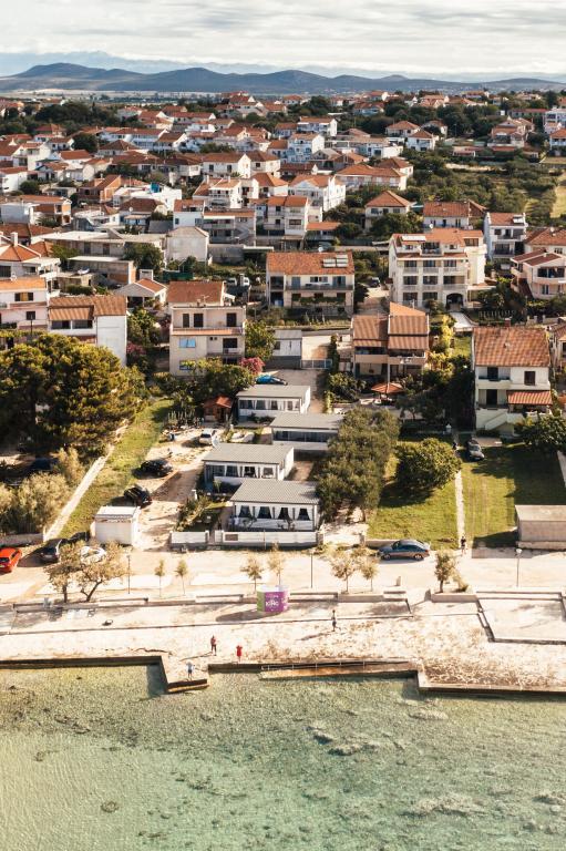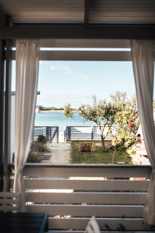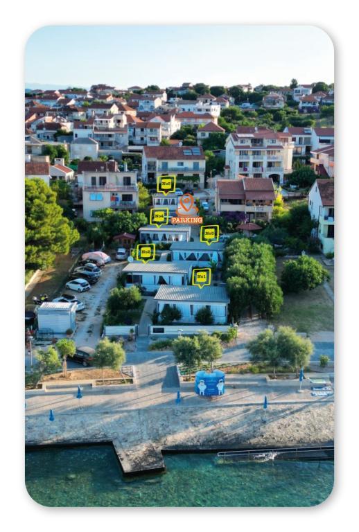 Mobilne hišice se nahajajo v središču Pakoštanov, tik ob glavni peščeni plaži z neposrednim pogledom na morje. Mobilna hišica ima dve spalnici, jedilnico, kuhinjo, stranišče in veliko teraso (5). Vsi gostje imajo na voljo žar. Gostom je na voljo parkirno mesto. Hišni ljubljenčki so dovoljeni, vendar se zaračuna doplačilo 7 €/noč na hišnega ljubljenčka. Imamo lasten privez za čolne in parkirišče za prikolice, ki sta gostom na voljo za doplačilo.