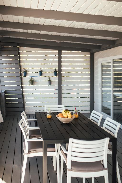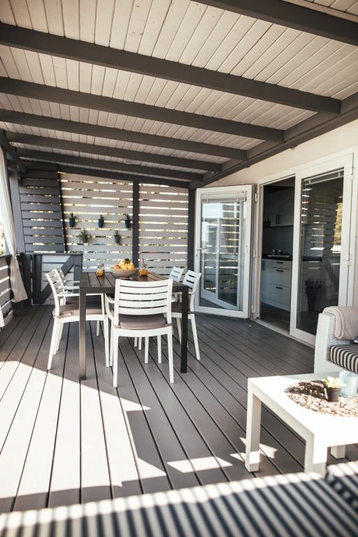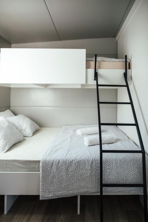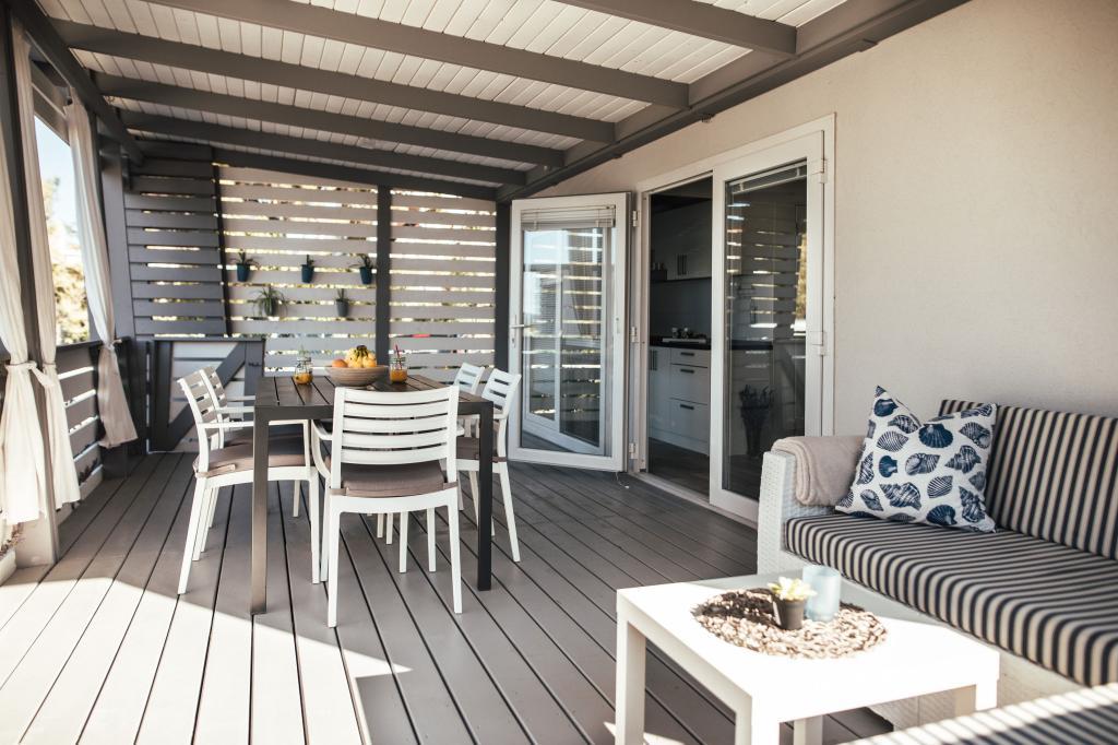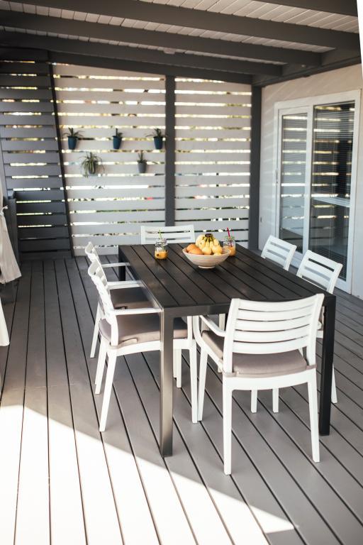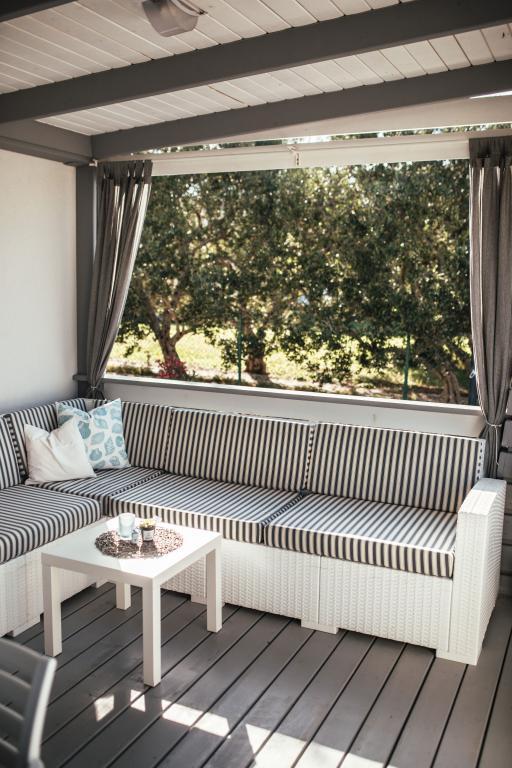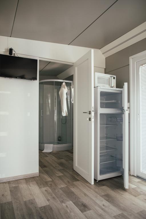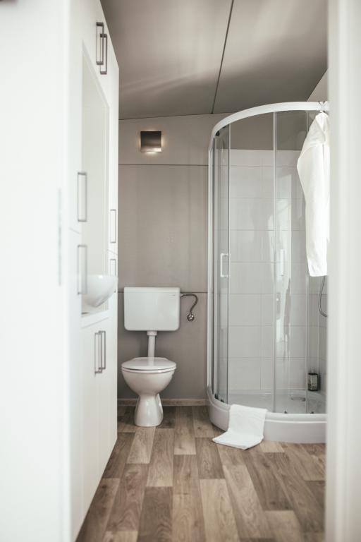 Mobilne hišice se nahajajo v središču Pakoštanov, tik ob glavni peščeni plaži z neposrednim pogledom na morje. Mobilna hišica ima dve spalnici, jedilnico, kuhinjo, stranišče in veliko teraso (5). Vsi gostje imajo na voljo žar. Gostom je na voljo parkirno mesto. Hišni ljubljenčki so dovoljeni, vendar se zaračuna doplačilo 7 €/noč na hišnega ljubljenčka. Imamo lasten privez za čolne in parkirišče za prikolice, ki sta gostom na voljo za doplačilo.