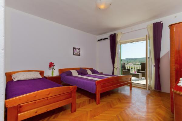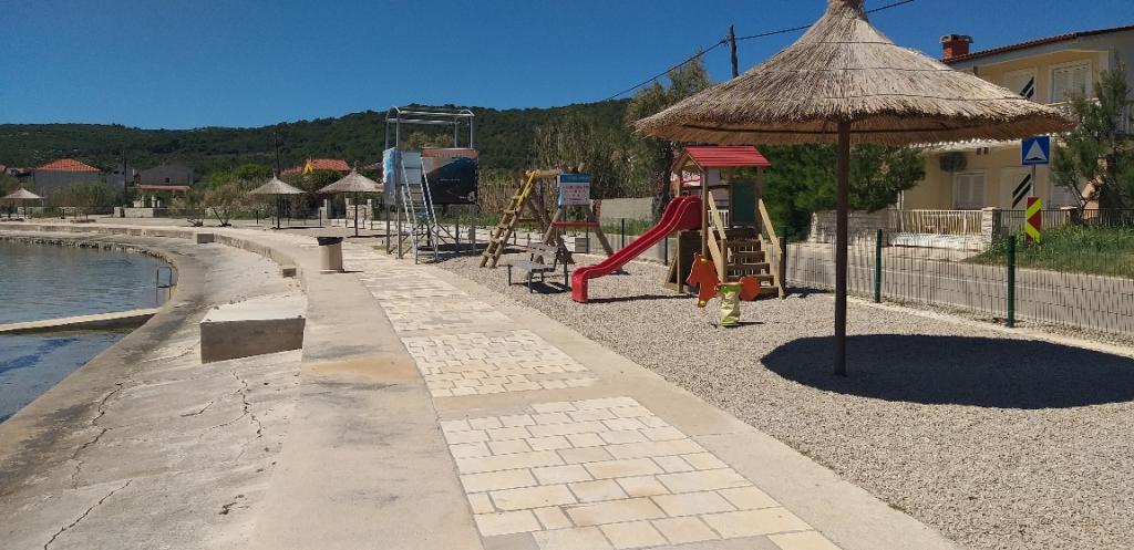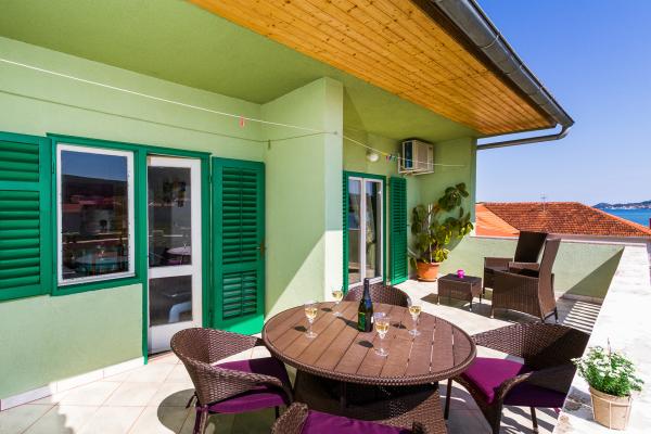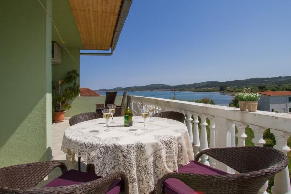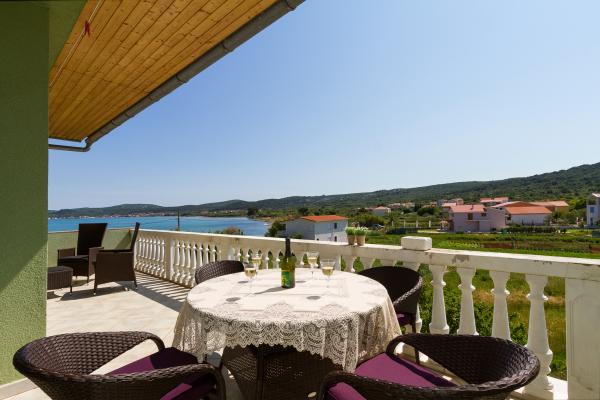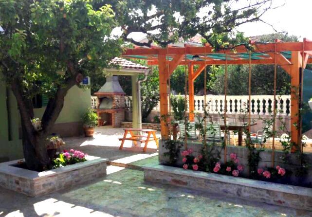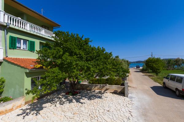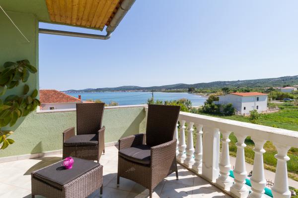 NAHAJAMO SE V PRVI VRSTI DO MORJA. Idealno za družinske počitnice. Peščena plaža je oddaljena 20 m od apartmaja. Center mesta je oddaljen le 200 m. Apartmaji so v družinski hiši, v 2 nadstropjih. Cena vključuje BREZPLAČEN WIFI, brezplačno parkiranje, klimatsko napravo, zunanji žar. A5 - se nahaja v 2. nadstropju. Ima spalnico z zakonsko posteljo (180 - 200 cm) in 2 enojnima posteljama, stranišče, ločeno dnevno sobo z raztegljivim kavčem, LCD-jem in novo kuhinjo. Apartma ima ogromno teraso s pogledom na celoten Pašmanski kanal. Ima klimatsko napravo. A4 1 se nahaja v 1. nadstropju. Ima spalnico z zakonsko posteljo (180 - 200 cm) in raztegljivim kavčem, ločeno dnevno sobo s kotnim raztegljivim kavčem za 2 osebi, LCD-jem, straniščem, kuhinjo. Vsaka soba ima svoj balkon s pogledom na morje. Ima klimatsko napravo.