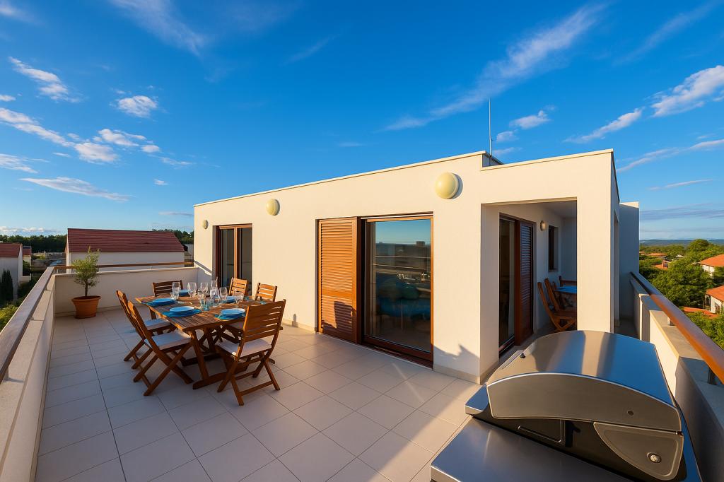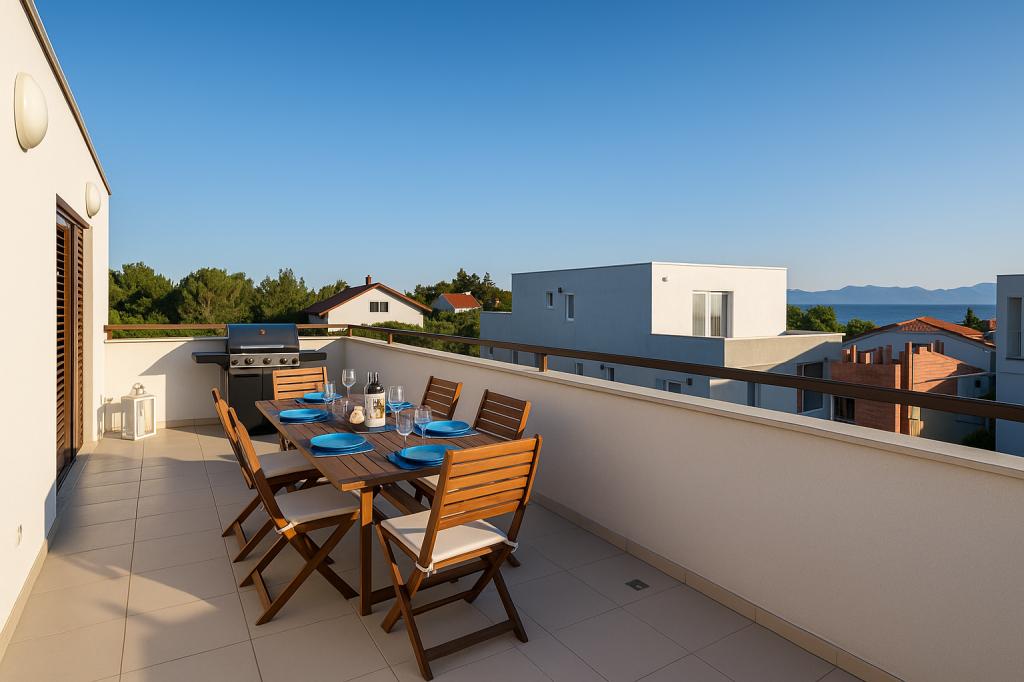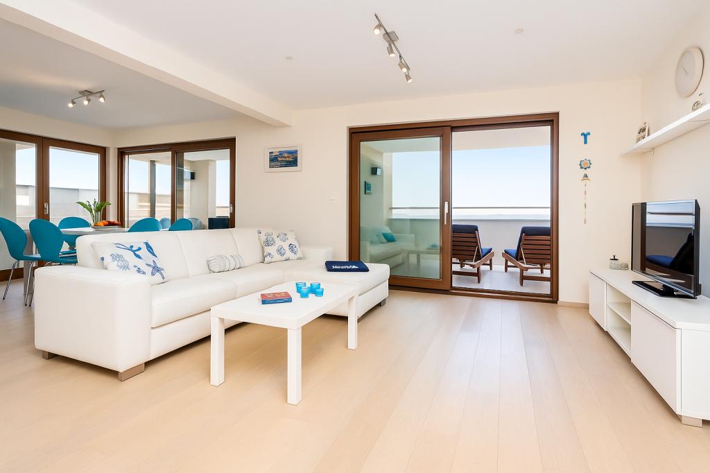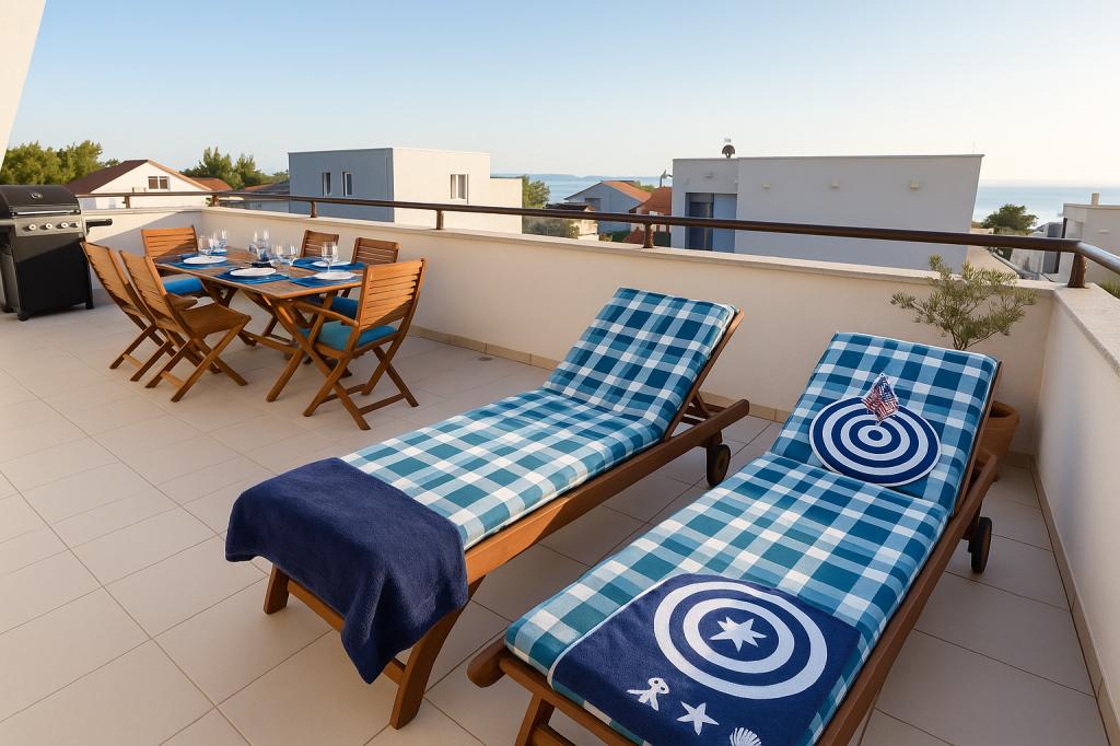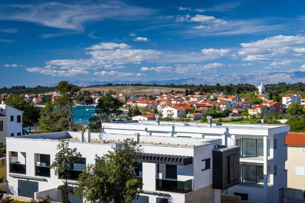 Nastanitev Aquamarine Deluxe Penthouse Apartment se nahaja v Petrčanih, 250 m od plaže Punta Radman, 350 m od plaže Pinija in 200 m od avtobusne postaje Petrčane. Ponuja opremo za peko na žaru in teraso. Ta klimatizirana nastanitev se nahaja 150 m od plaže Pineta in vključuje brezplačen WiFi ter zasebno parkirišče. Apartma ima 3 spalnice, 1 kopalnico, posteljnino, brisače, TV z ravnim zaslonom s satelitskimi programi, jedilnico, popolnoma opremljeno kuhinjo in balkon s pogledom na morje. Najbližje letališče Zadar je oddaljeno 23 km, apartma pa z doplačilom organizira prevoz od/do letališča.