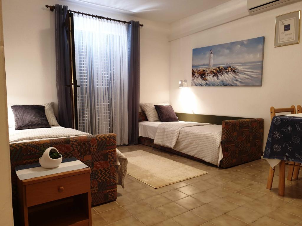 Apartmaji so urejeni in čisti ter opremljeni z vsem, kar potrebujete za krajše ali daljše bivanje. Lastnik je prijazen, dostopen in pripravljen pomagati pri vsem. Plaže so dobesedno na dosegu roke, minuta hoje (z majhnim otrokom) kamor koli greste. Skoraj vedno lahko najdete hladilnik, za otroke pa je na voljo tudi fina peščena plaža s plitvim morjem, kjer se najdejo mesta kadarkoli v dnevu. V kraju je dovolj kavarn, restavracij, picerij, trgovin s spominki ... Avto je dobesedno nepotreben (in ga lahko pustite na rezerviranem parkirišču v senci poleg apartmaja), saj je vse v nekaj minutah hoje. Vsako priporočilo za stanovanje.